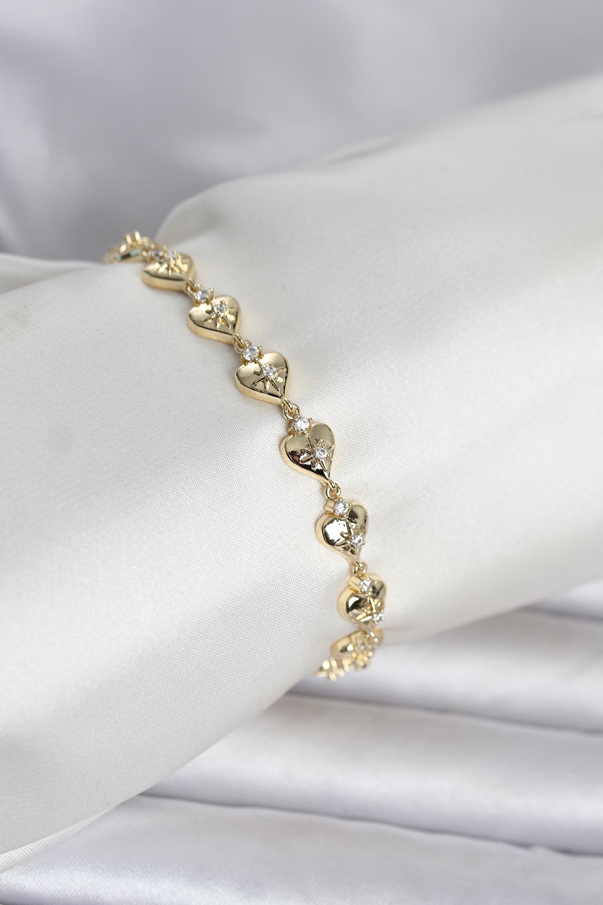 Pirinç Gold Renk Kalpli Kutup Yıldızı İşleme Kadın Bileklik