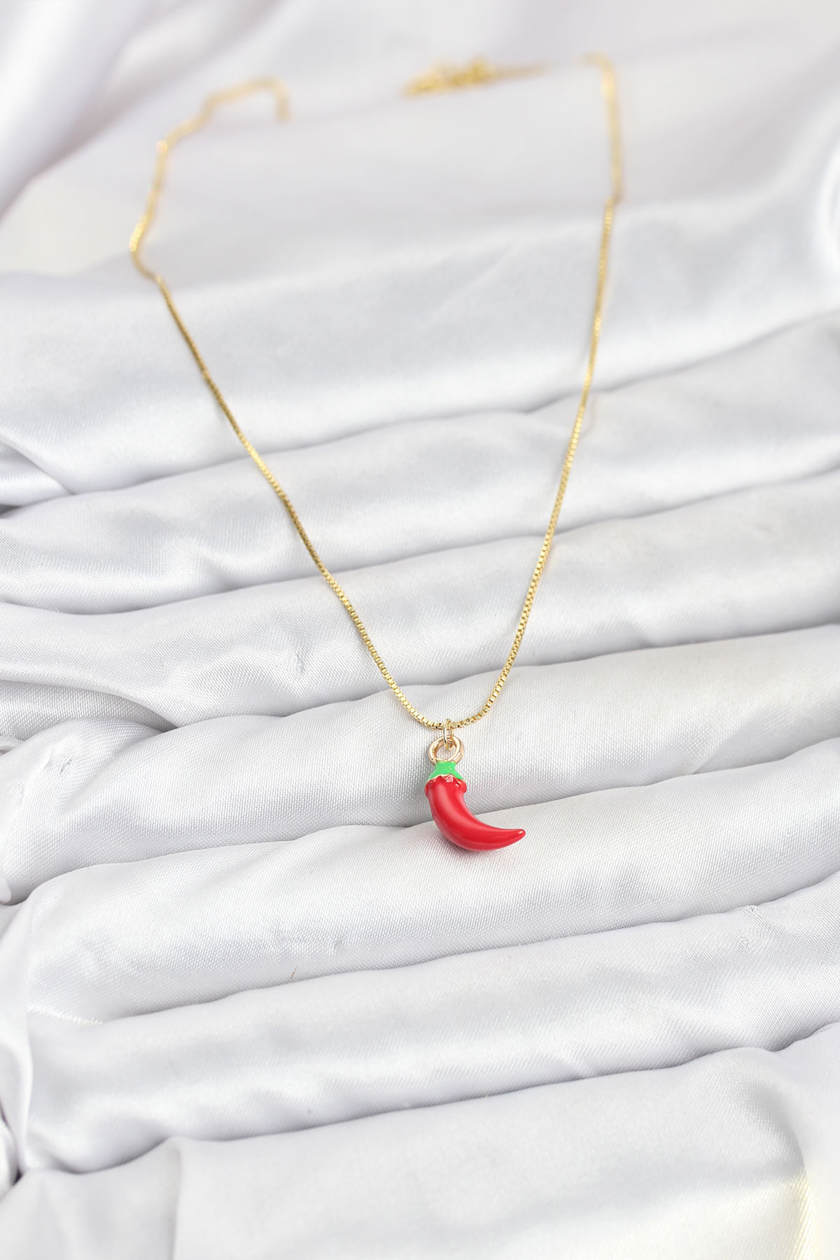 Pirinç Gold Renk Kırmızı Kapya Biber Model Kadın Kolye