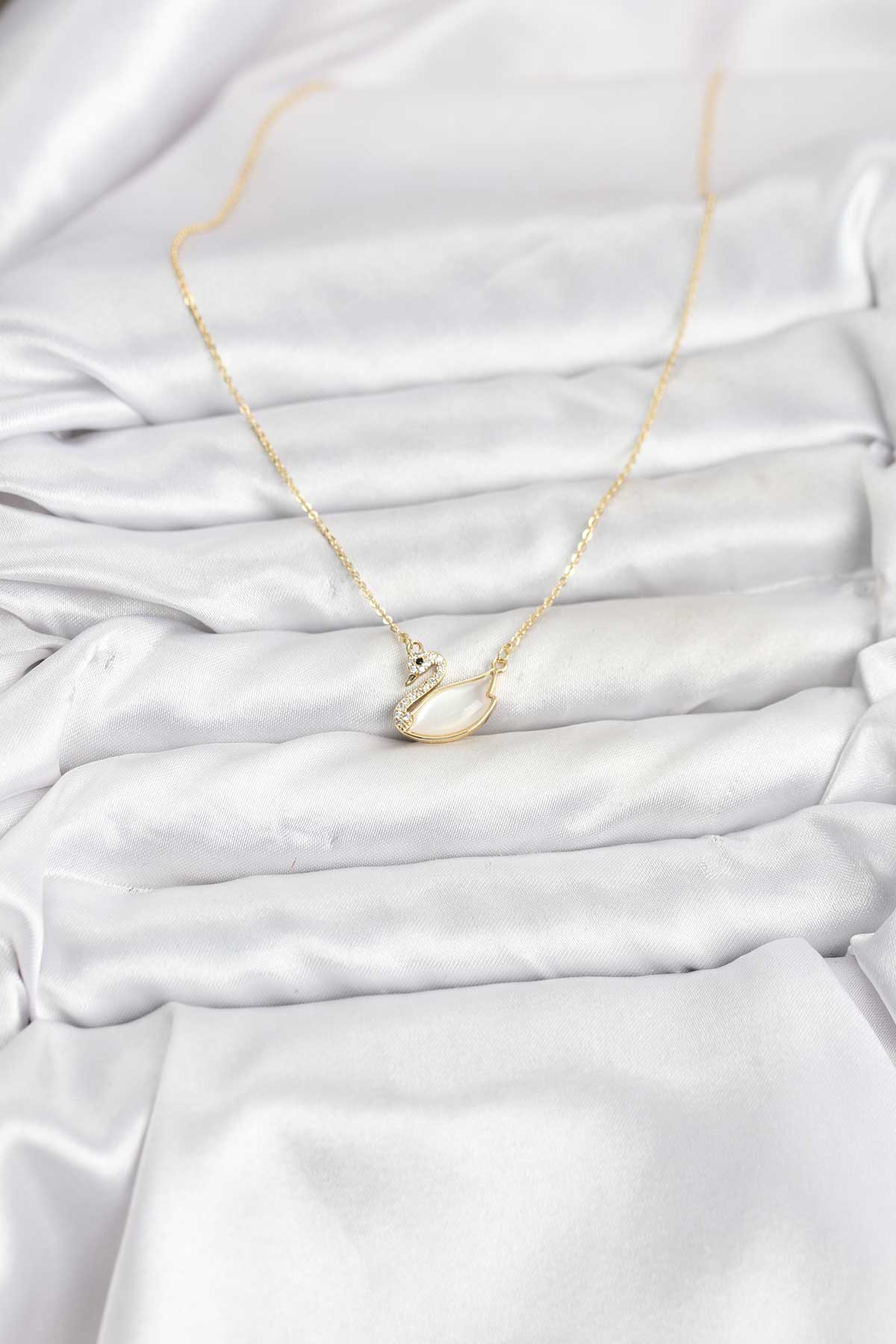 Pirinç Gold Renk Kuğu Model Kadın Kolye