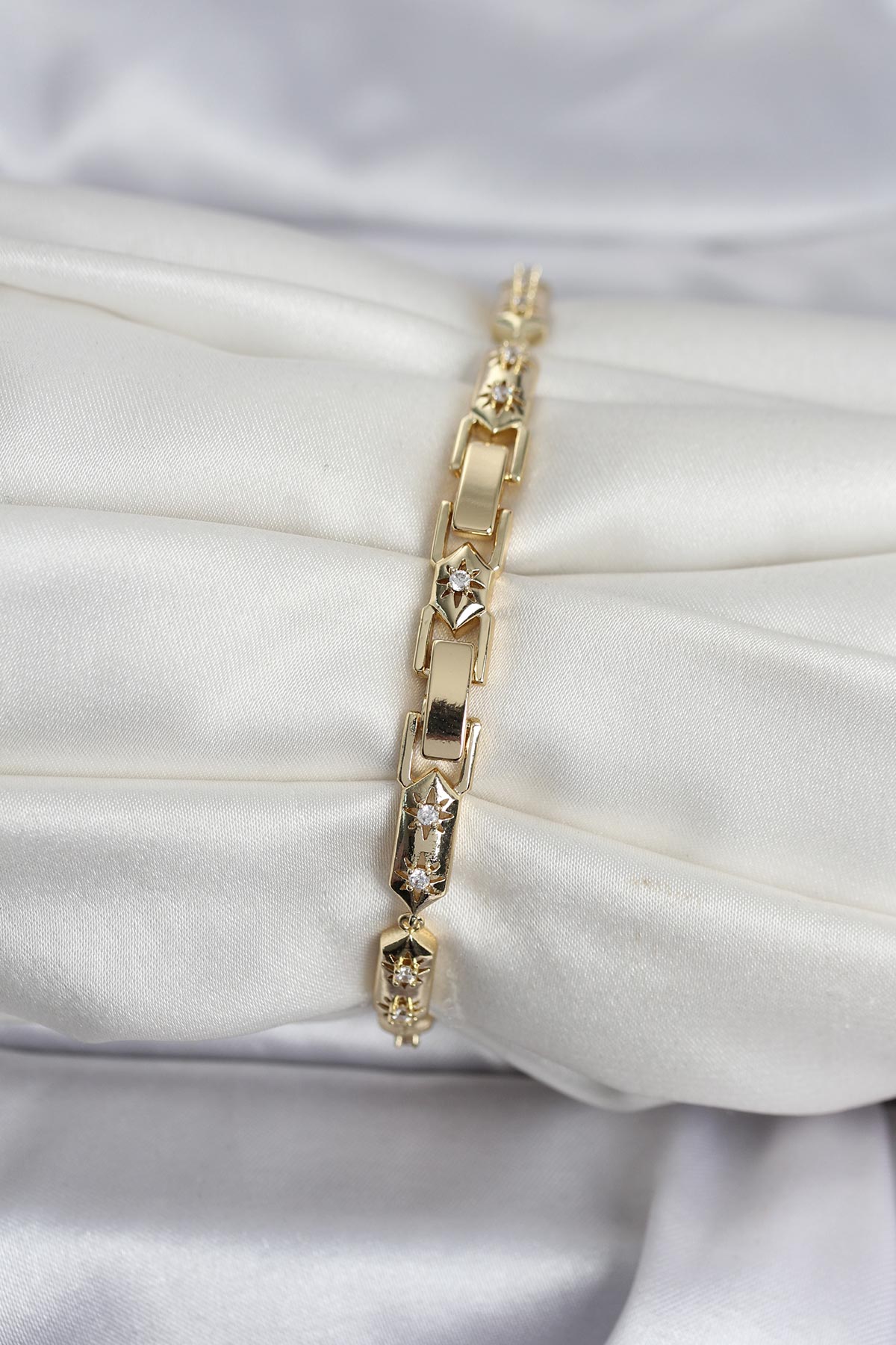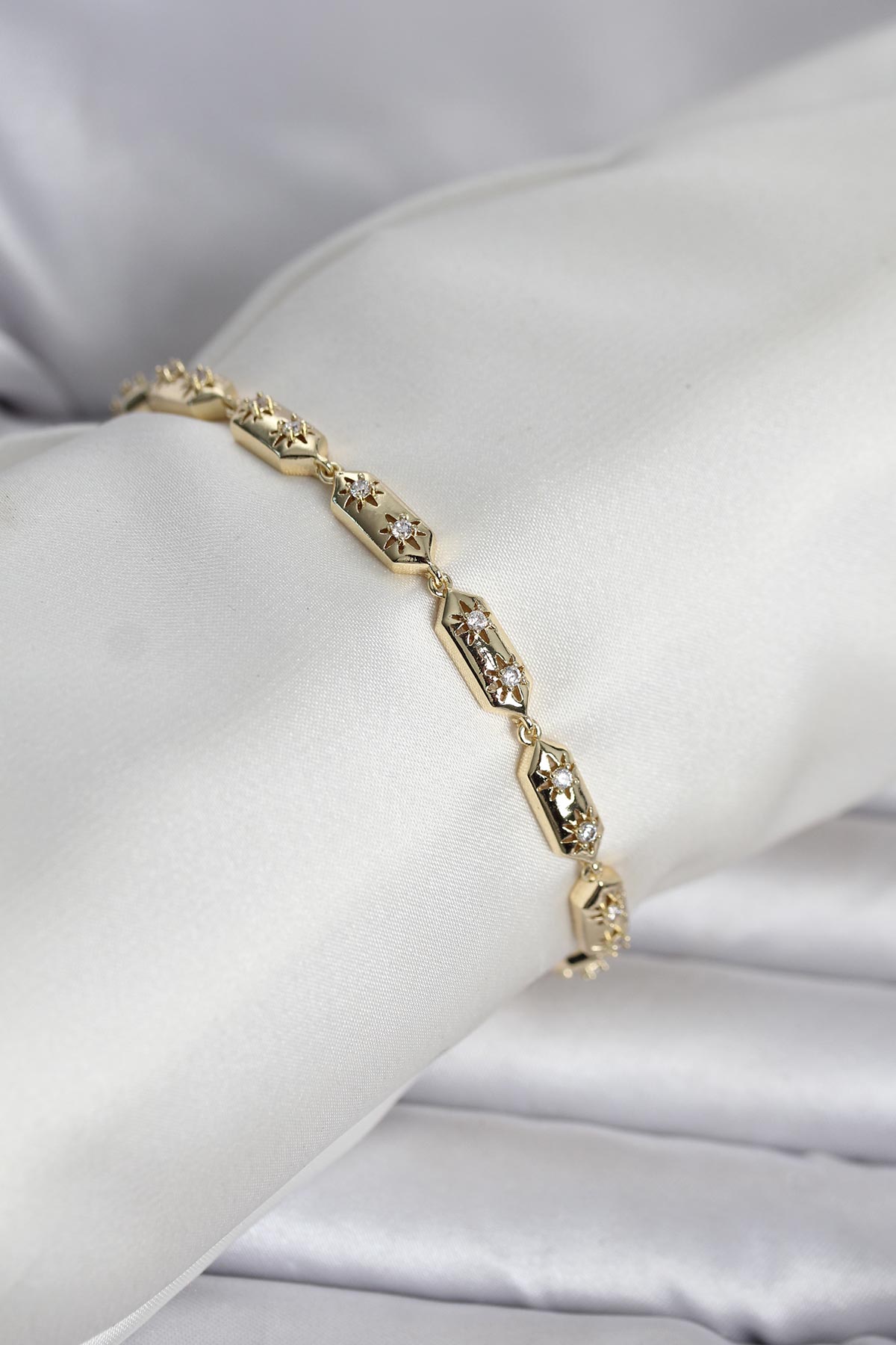 Pirinç Gold Renk Kutup Yıldızı İşleme Kadın Bileklik