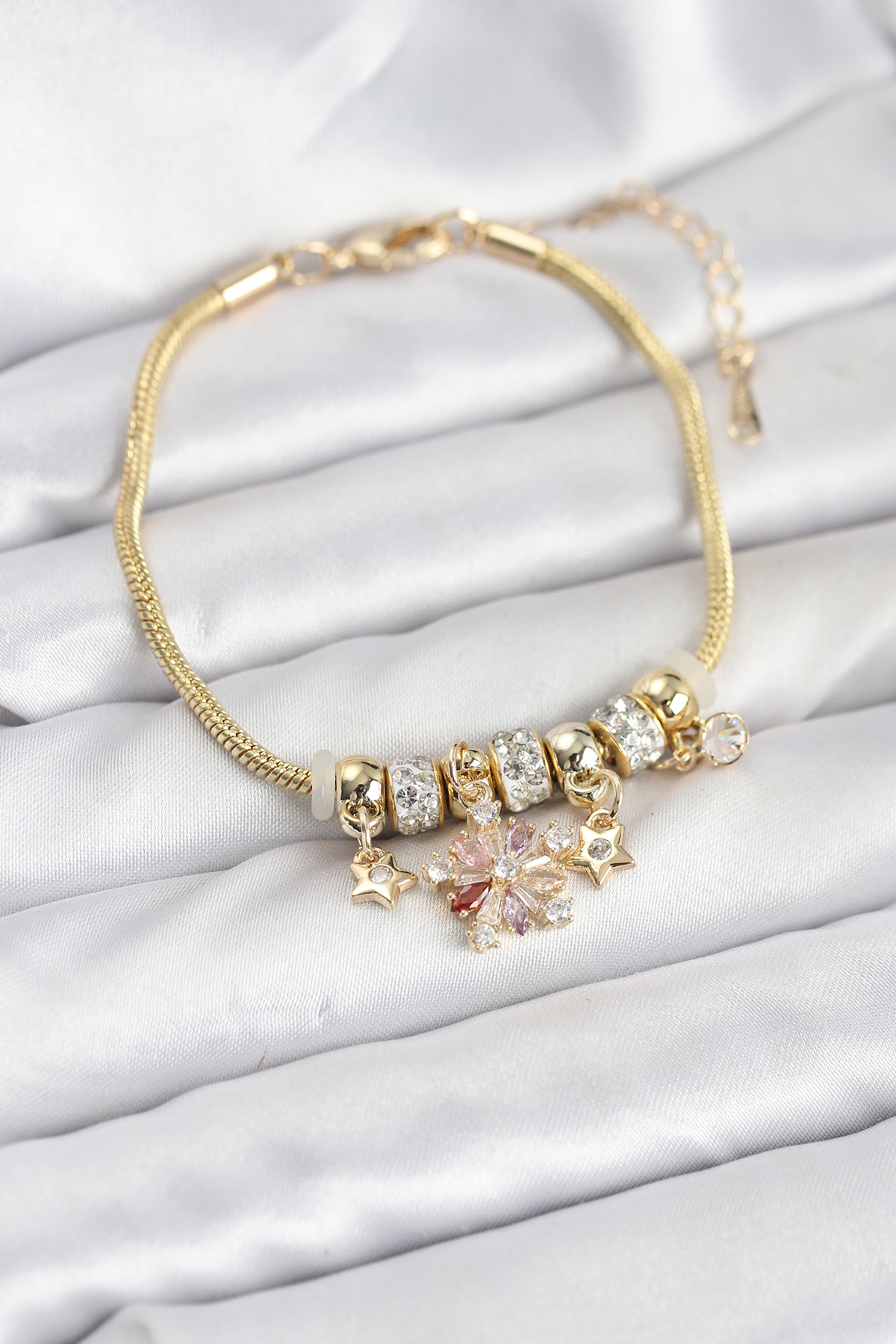 Pirinç Gold Renk Renkli Yıldız Charmlı Kadın Bileklik