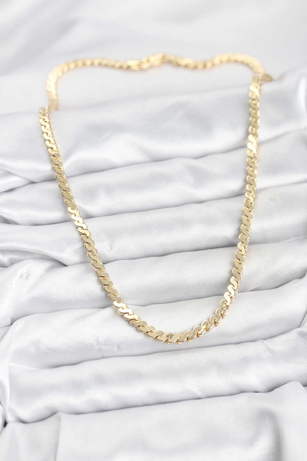 Pirinç Gold Renk Yassı Zincir Kadın Kolye