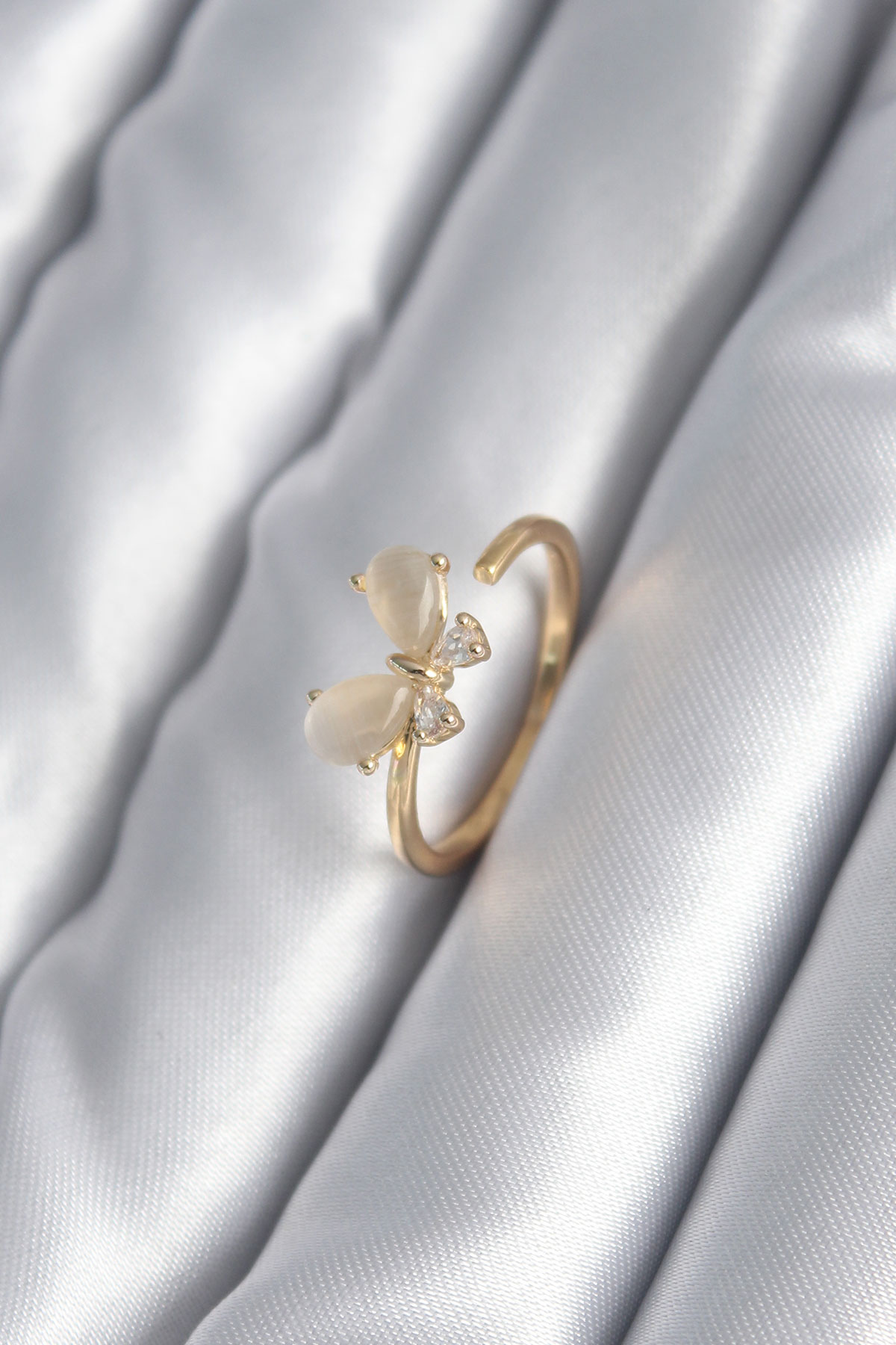 Pirinç Gold Renk Zirkon Taş Detay Kelebek Model Kadın Yüzük