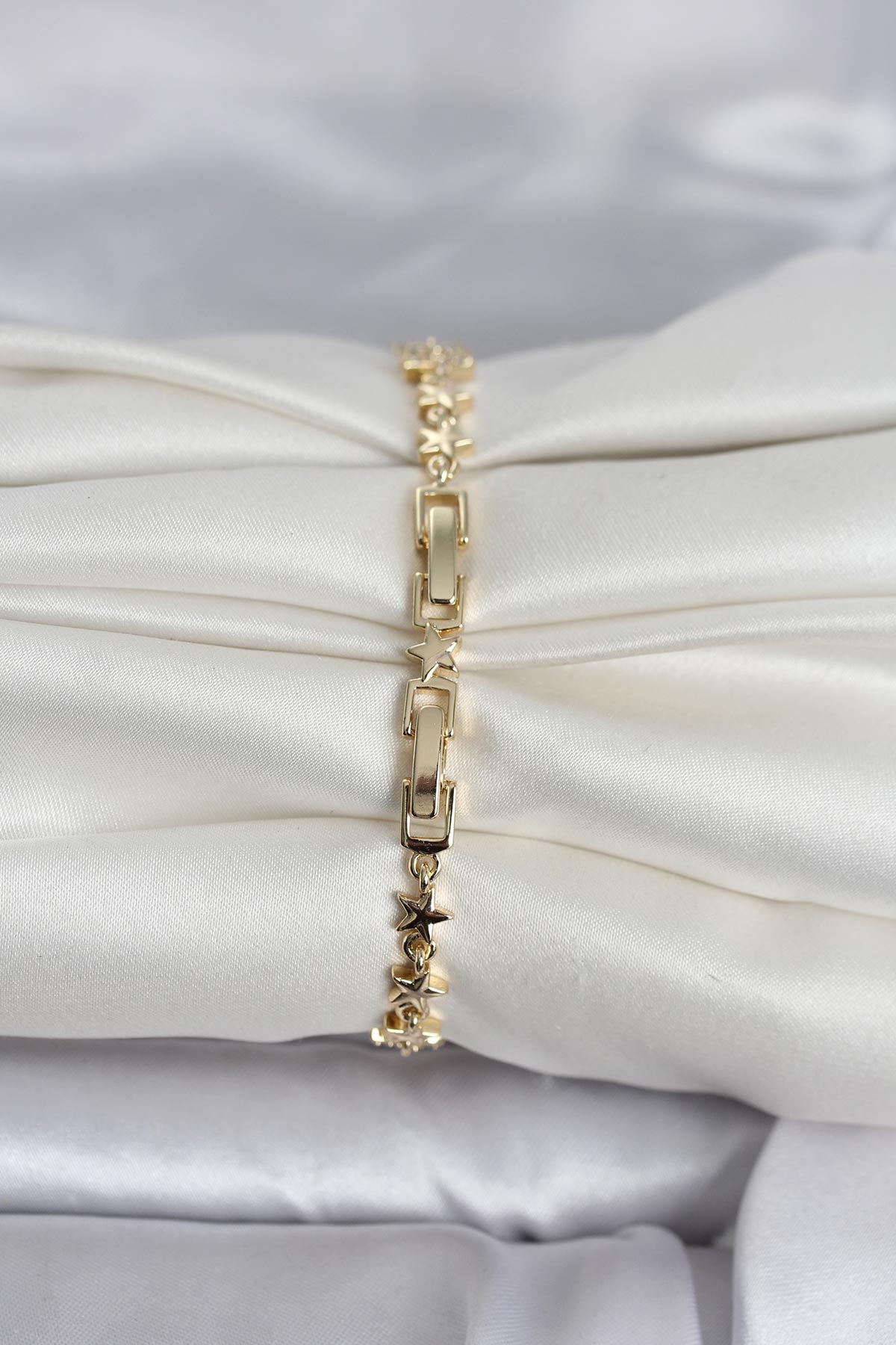Pirinç Gold Renk Zirkon Taşlı Ay ve Yıldız Model Kadın Bileklik