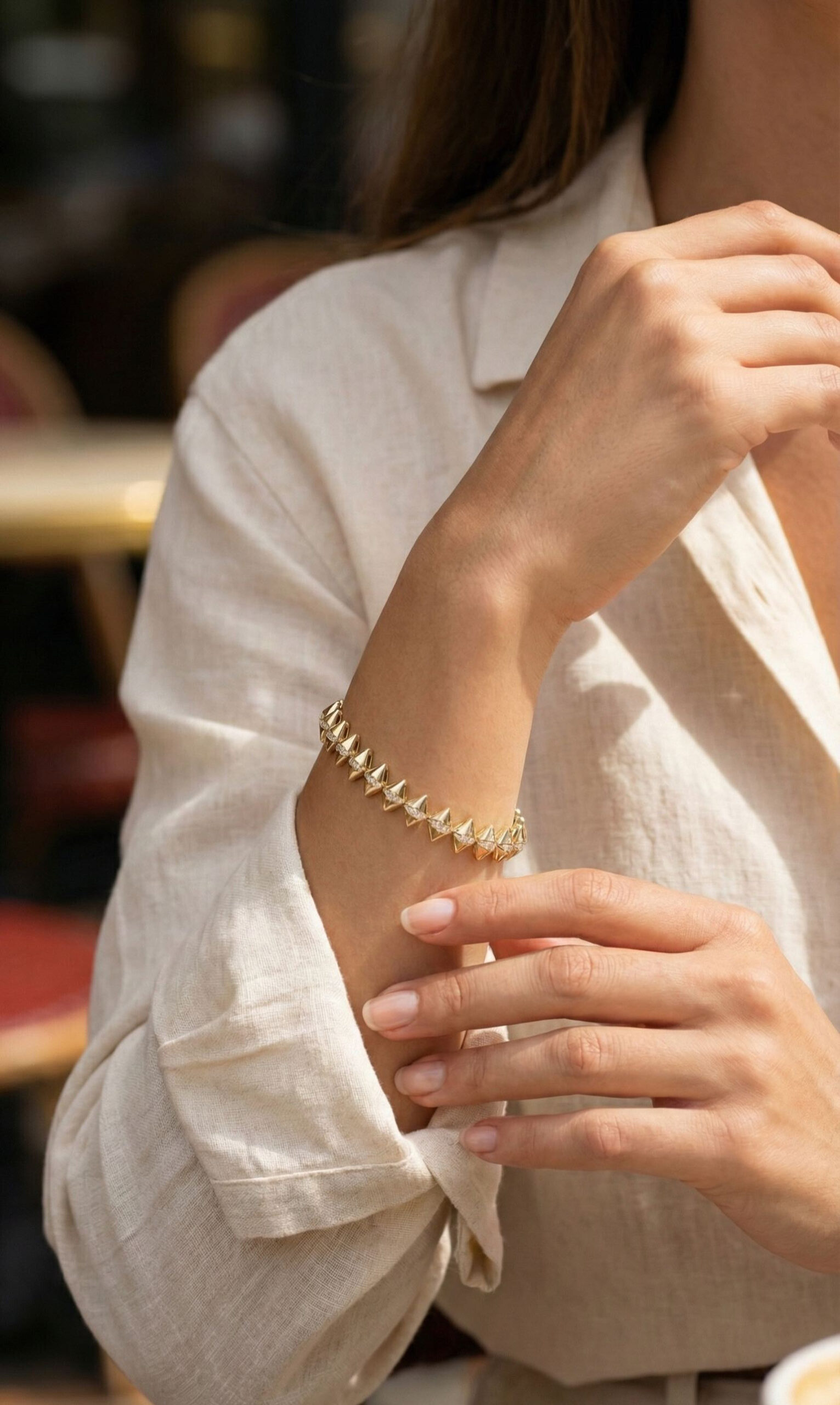 Pirinç Gold Renk Zirkon Taşlı Baklava Model Kadın Bileklik