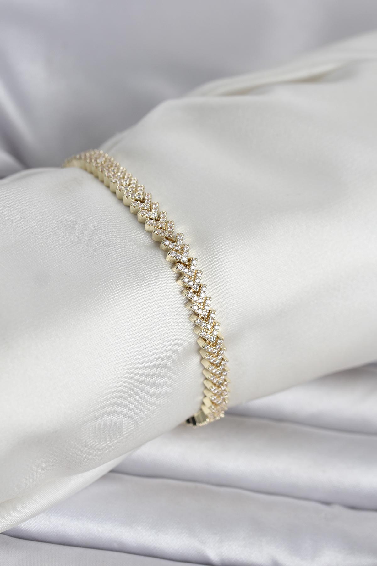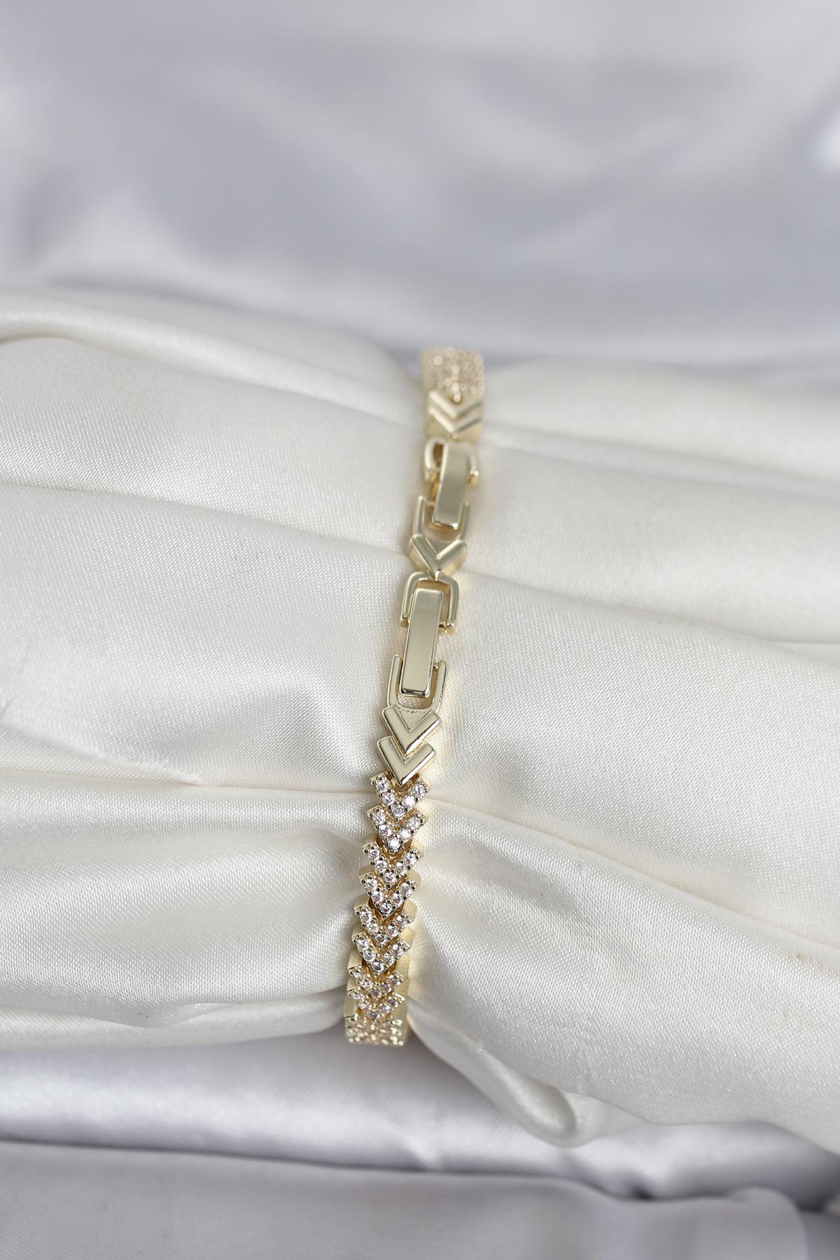 Pirinç Gold Renk Zirkon Taşlı Çavuş Model Kadın Bileklik