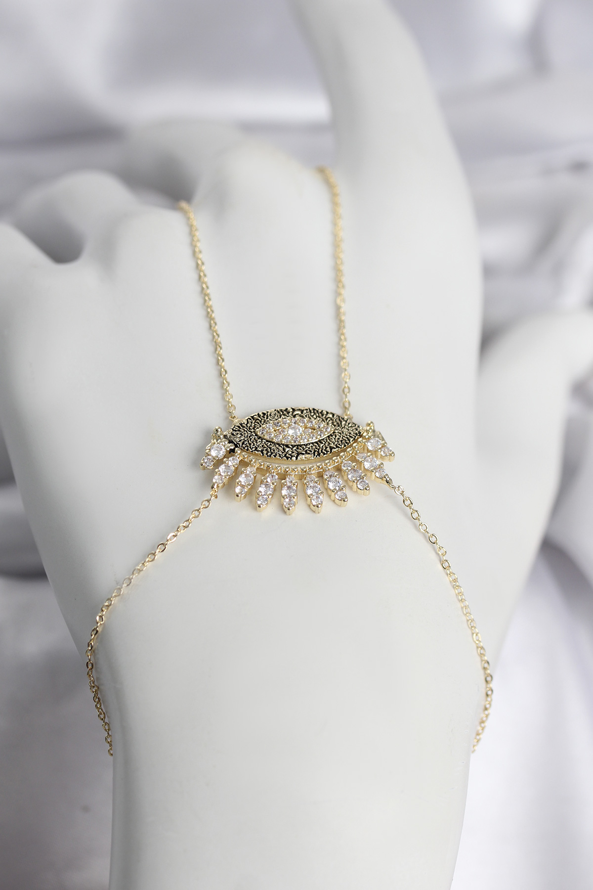 Pirinç Gold Renk Zirkon Taşlı Göz Model Kadın Şahmeran