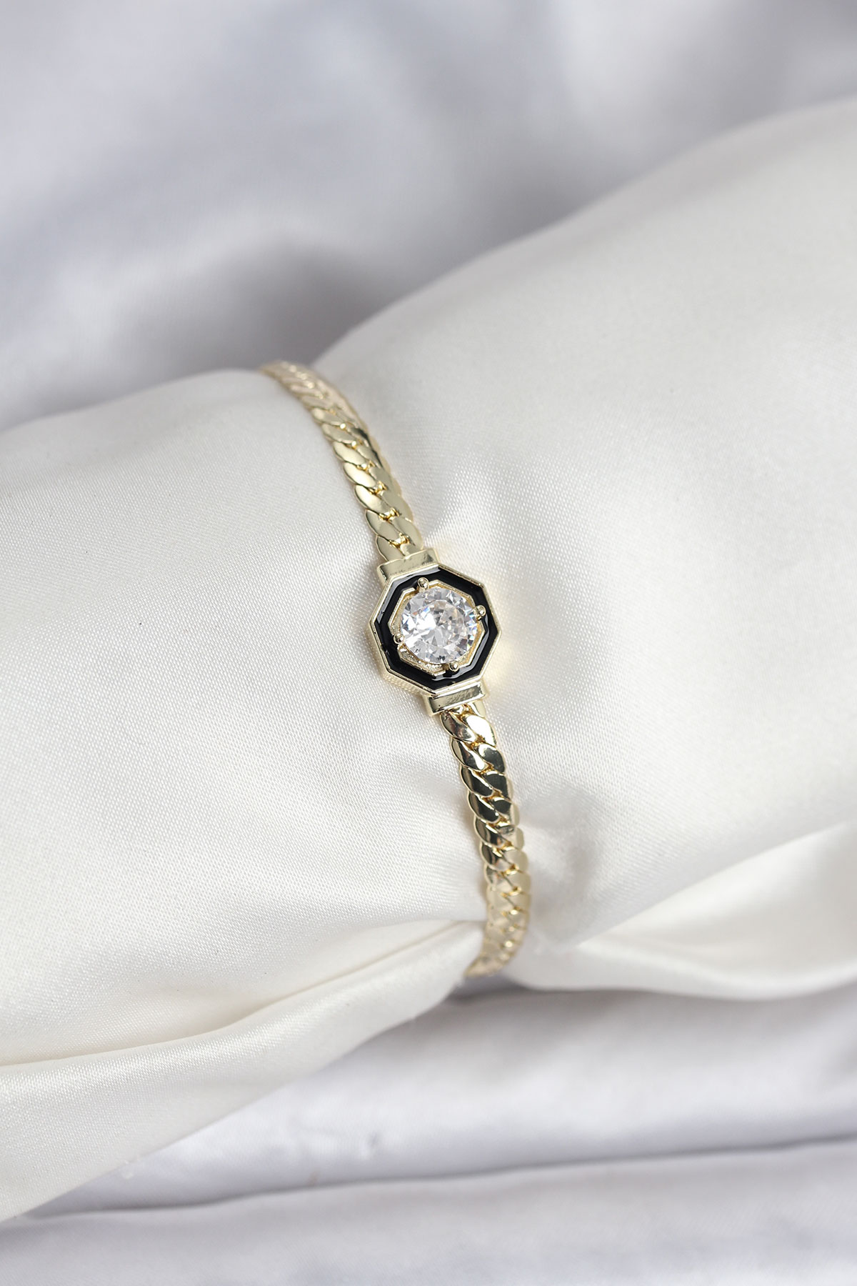 Pirinç Gold Renk Zirkon Taşlı Kadın Bileklik