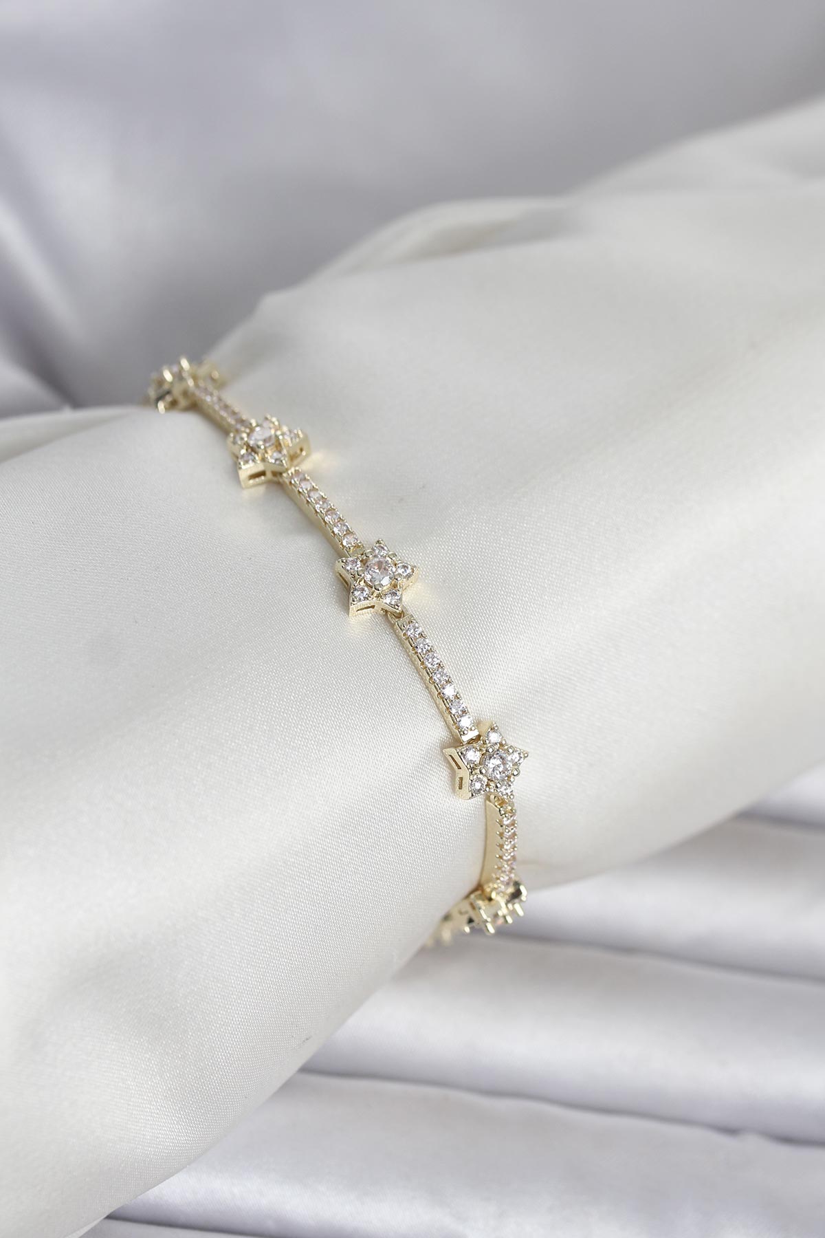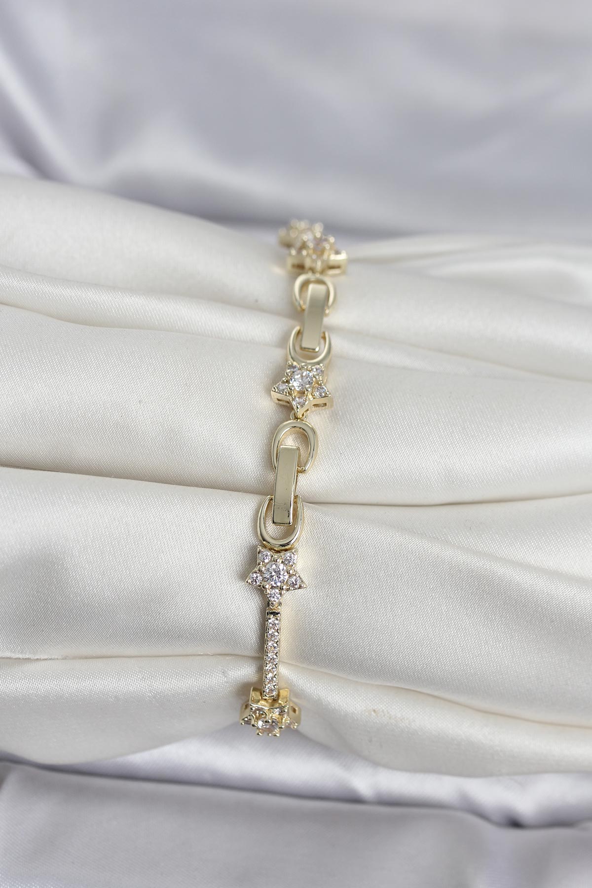 Pirinç Gold Renk Zirkon Taşlı Yıldız Model Kadın Bileklik