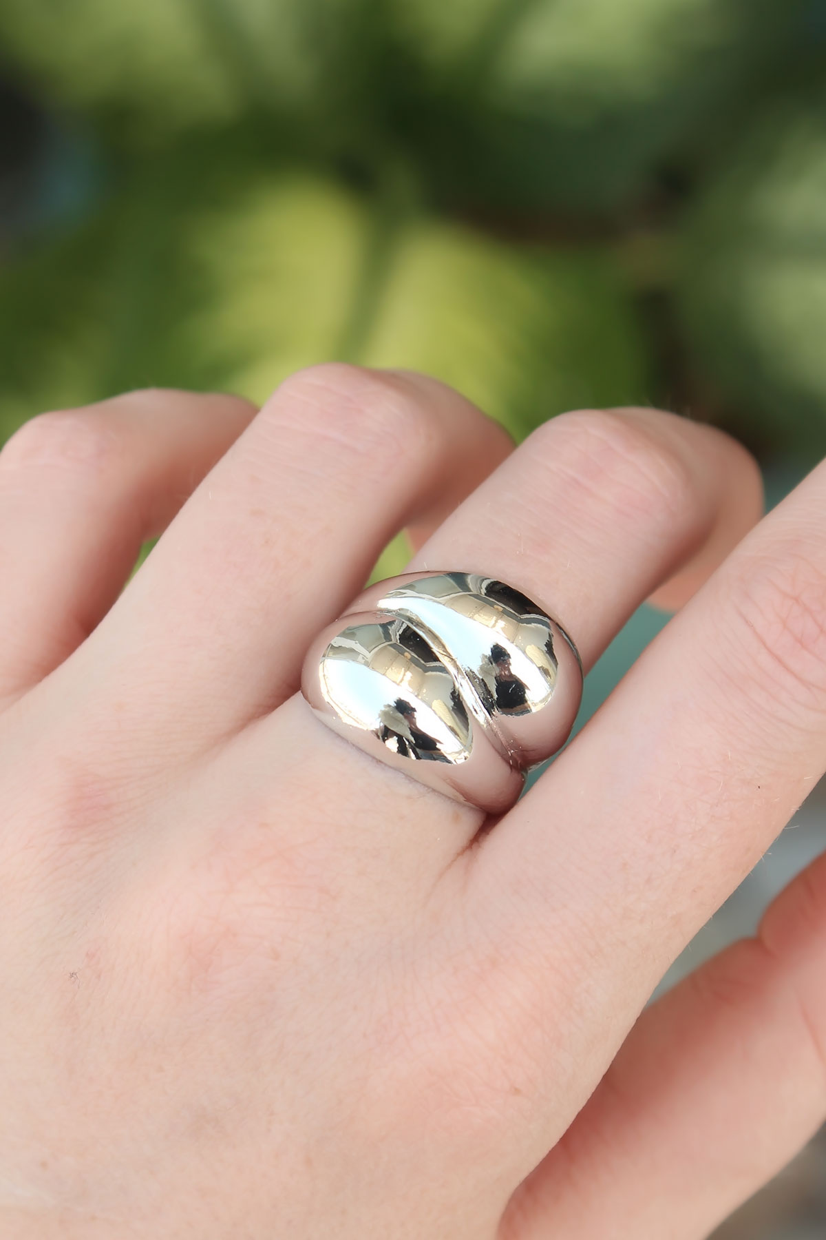 Pirinç Gümüş Renk Ayarlanabilir Damla Yüzük