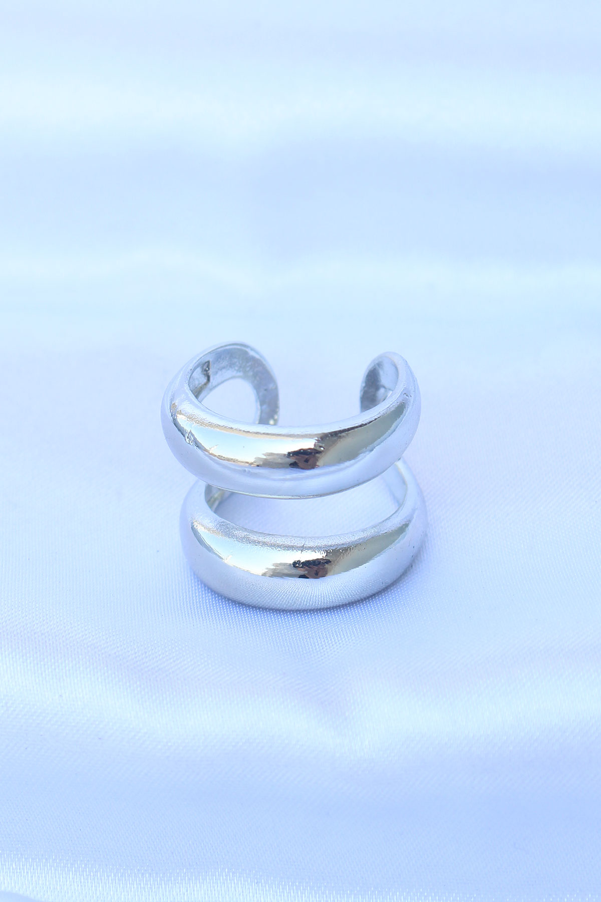 Pirinç Gümüş Renk Ayarlanabilir Şerit Yüzük