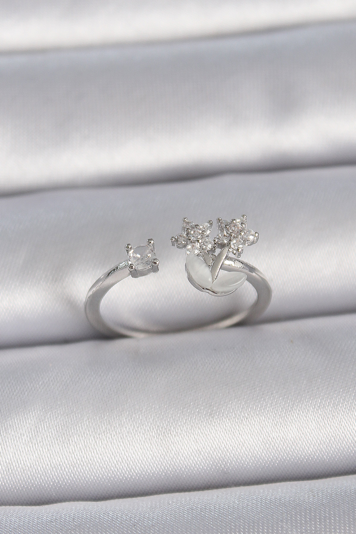 Pirinç Gümüş Renk Ayarlanabilir Zirkon Taşlı Yıldız Model Kadın Yüzük