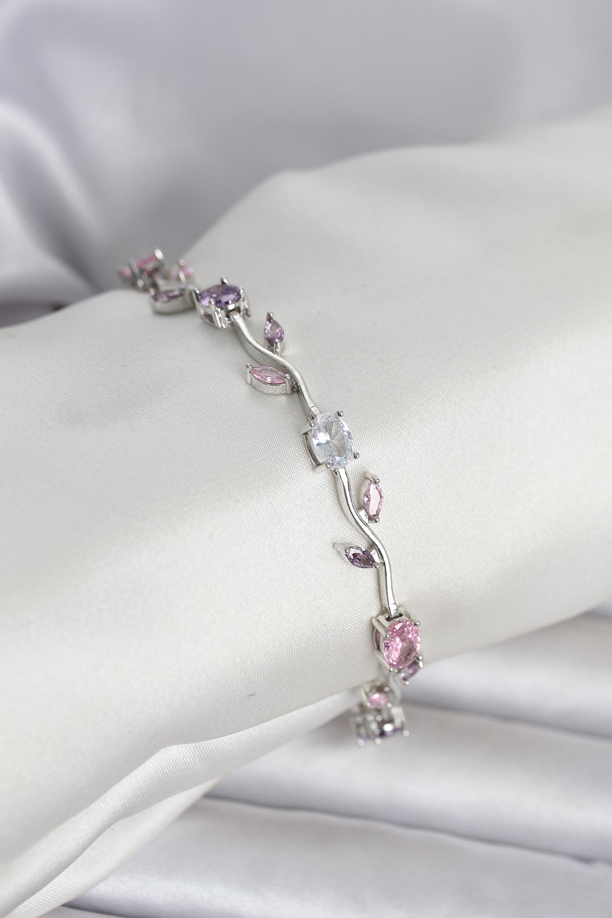 Pirinç Gümüş Renk Çiçek Sarmaşık Model Kadın Bileklik