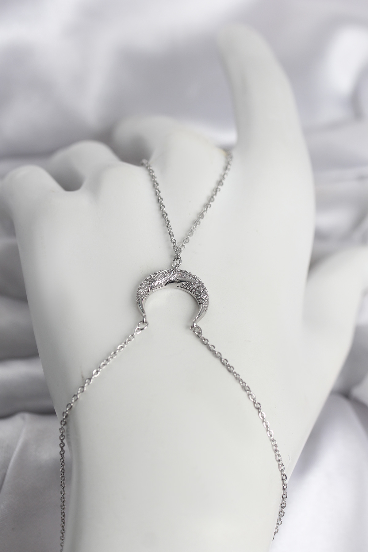 Pirinç Gümüş Renk Hilal Model Zirkon Taşlı Kadın Şahmeran