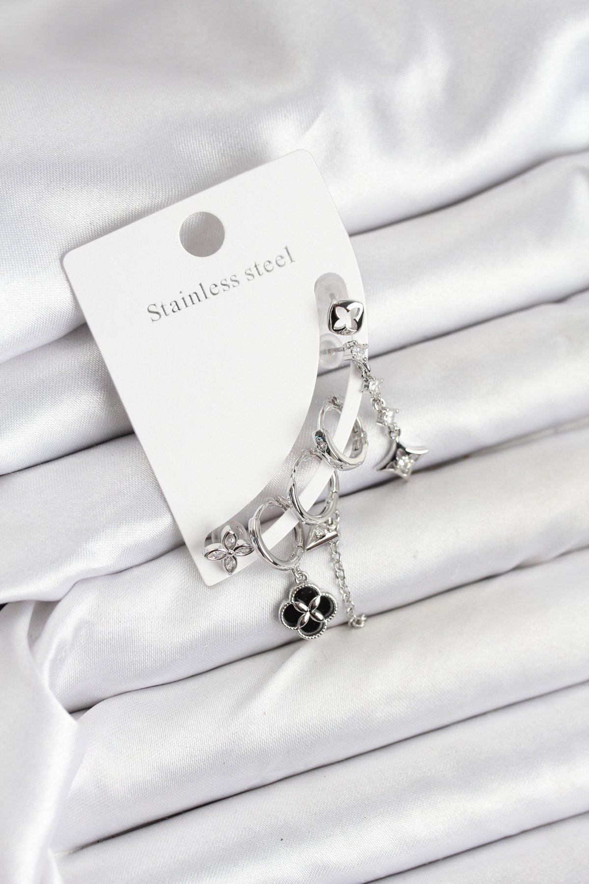 Pirinç Gümüş Renk Kadın Set Küpe