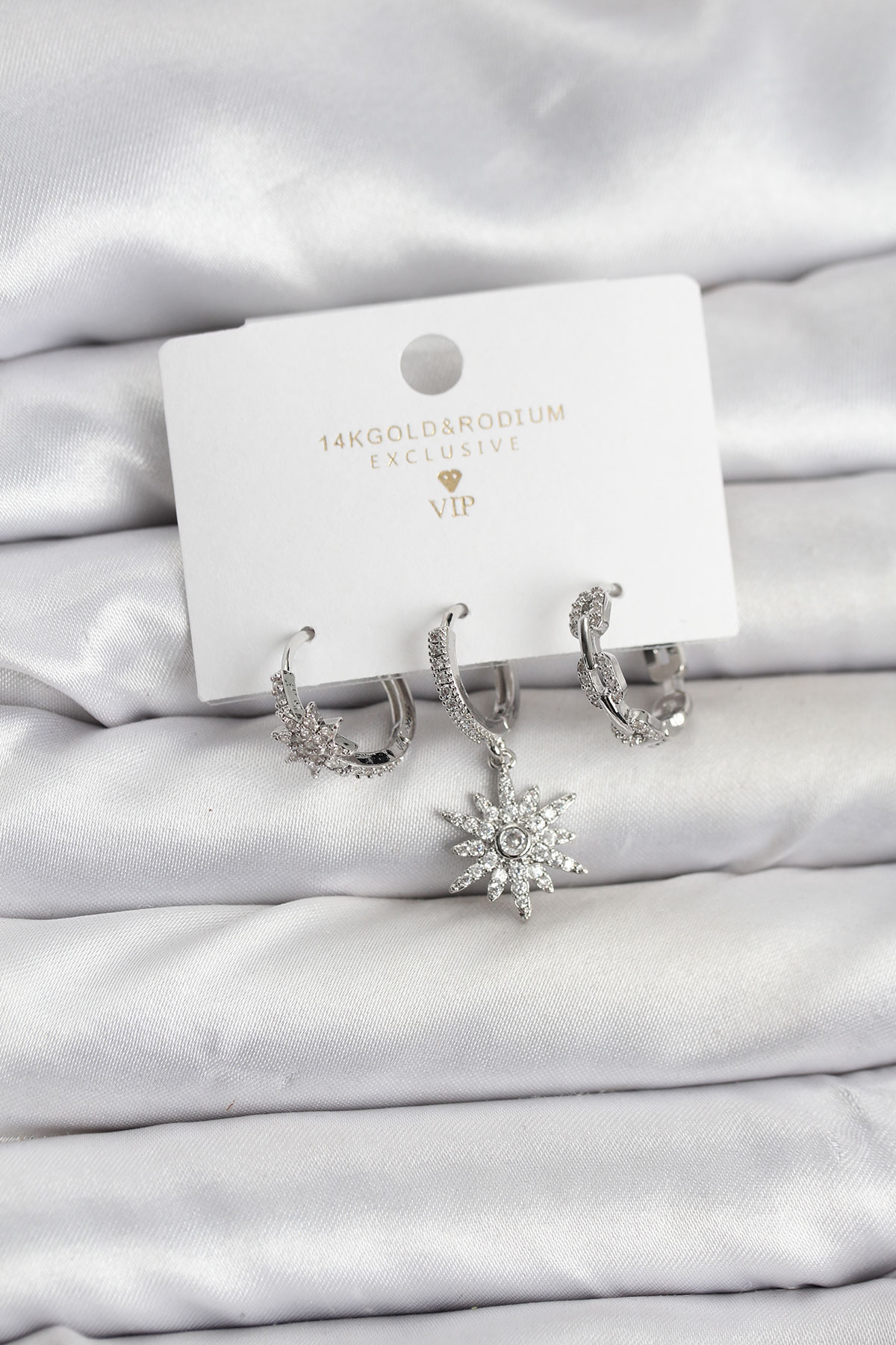 Pirinç Gümüş Renk Kutup Yıldızı Model 3’lü Kadın Küpe Seti