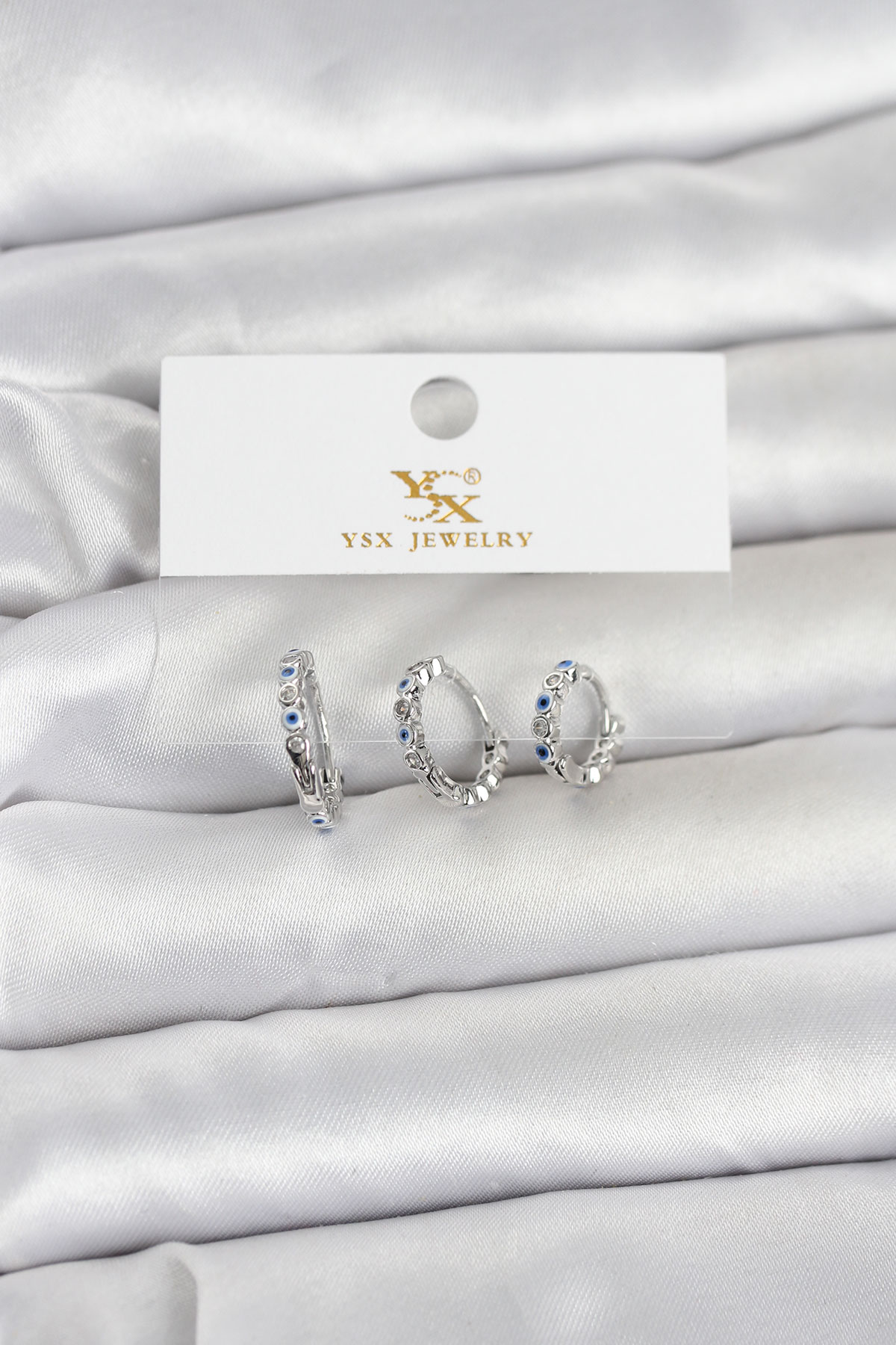 Pirinç Gümüş Renk Nazarlı Model 3’lü Kadın Küpe