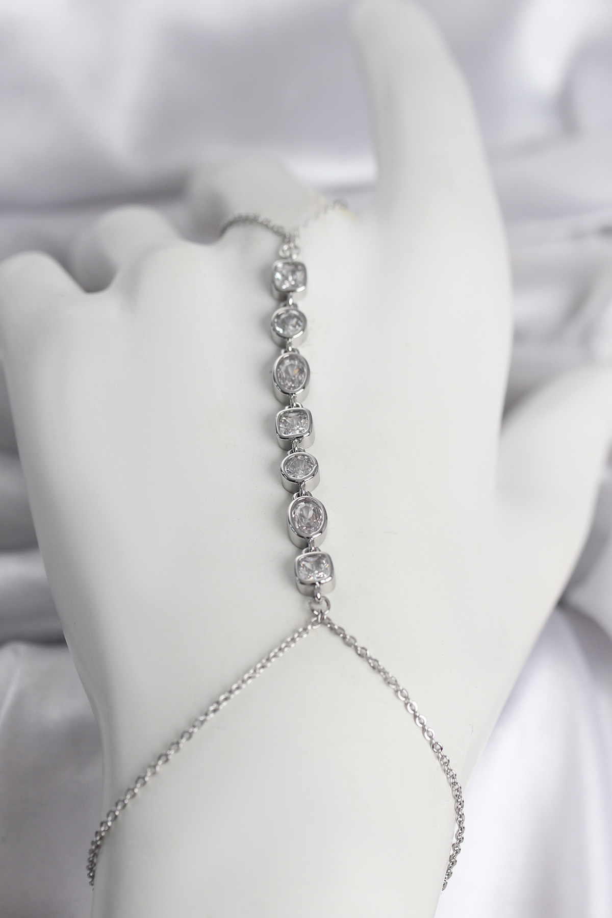 Pirinç Gümüş Renk Sıralı Zirkon Taşlı Kadın Şahmeran