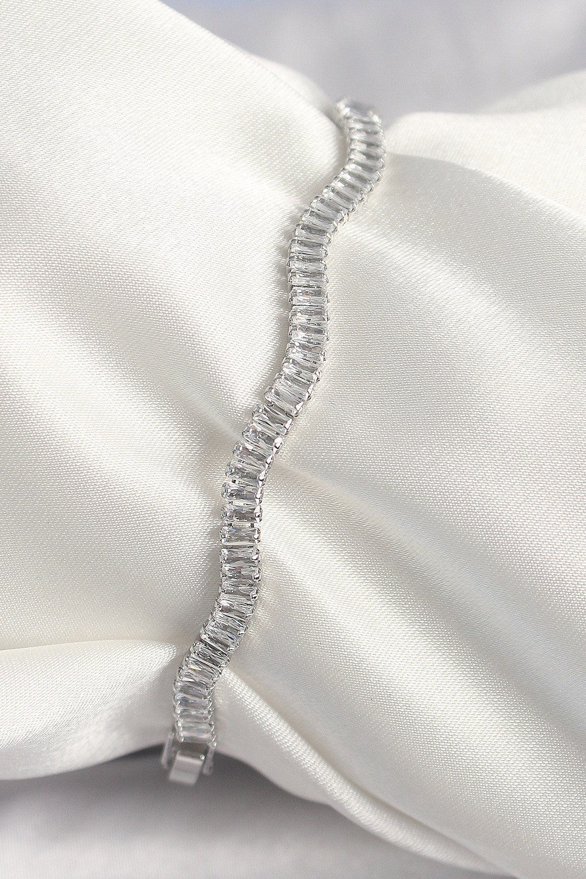 Pirinç Gümüş Renk Su Yolu Zirkon Taşlı Model Kadın Bileklik