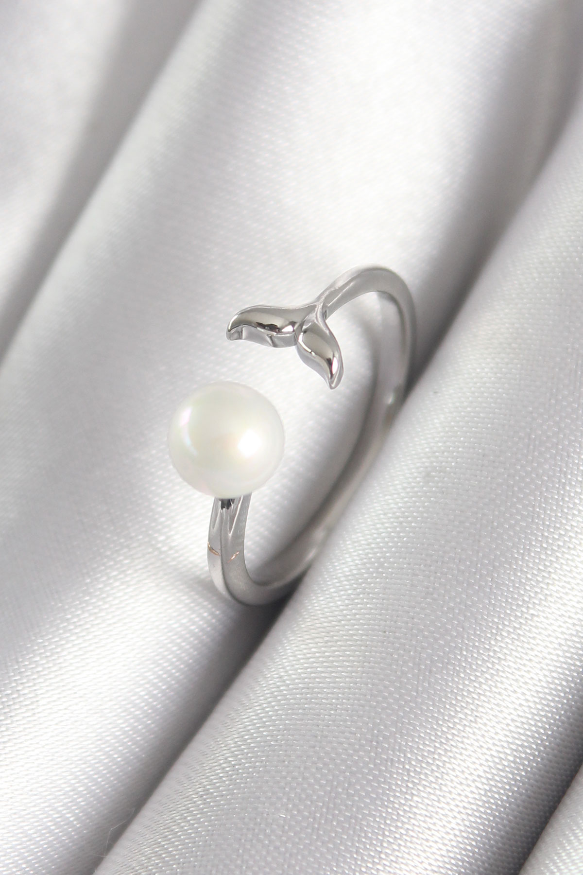 Pirinç Gümüş Renk Top İnci Figür Balık Kuyruğu Model Kadın Yüzük