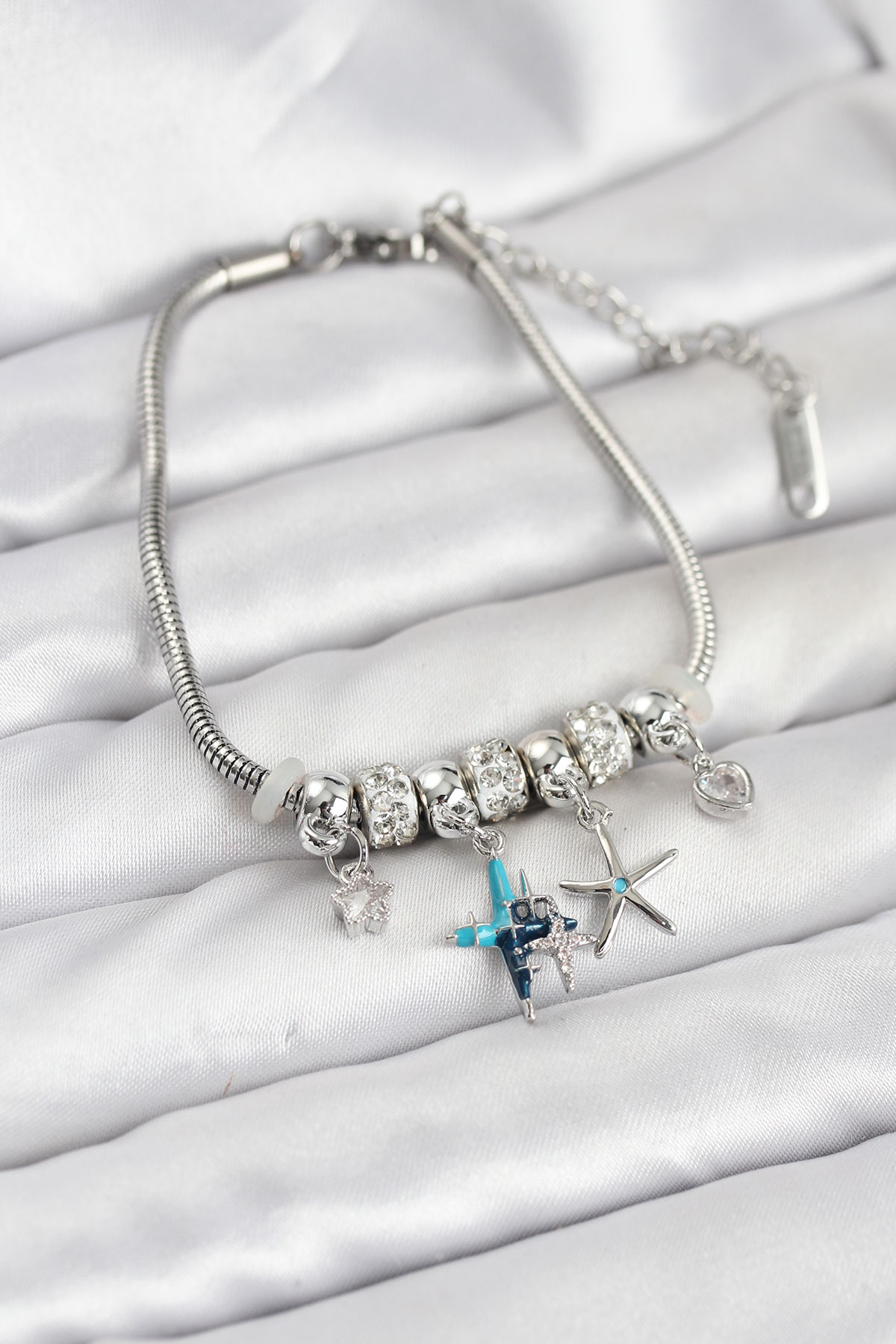 Pirinç Gümüş Renk Yıldız Model Charmlı Kadın Bileklik