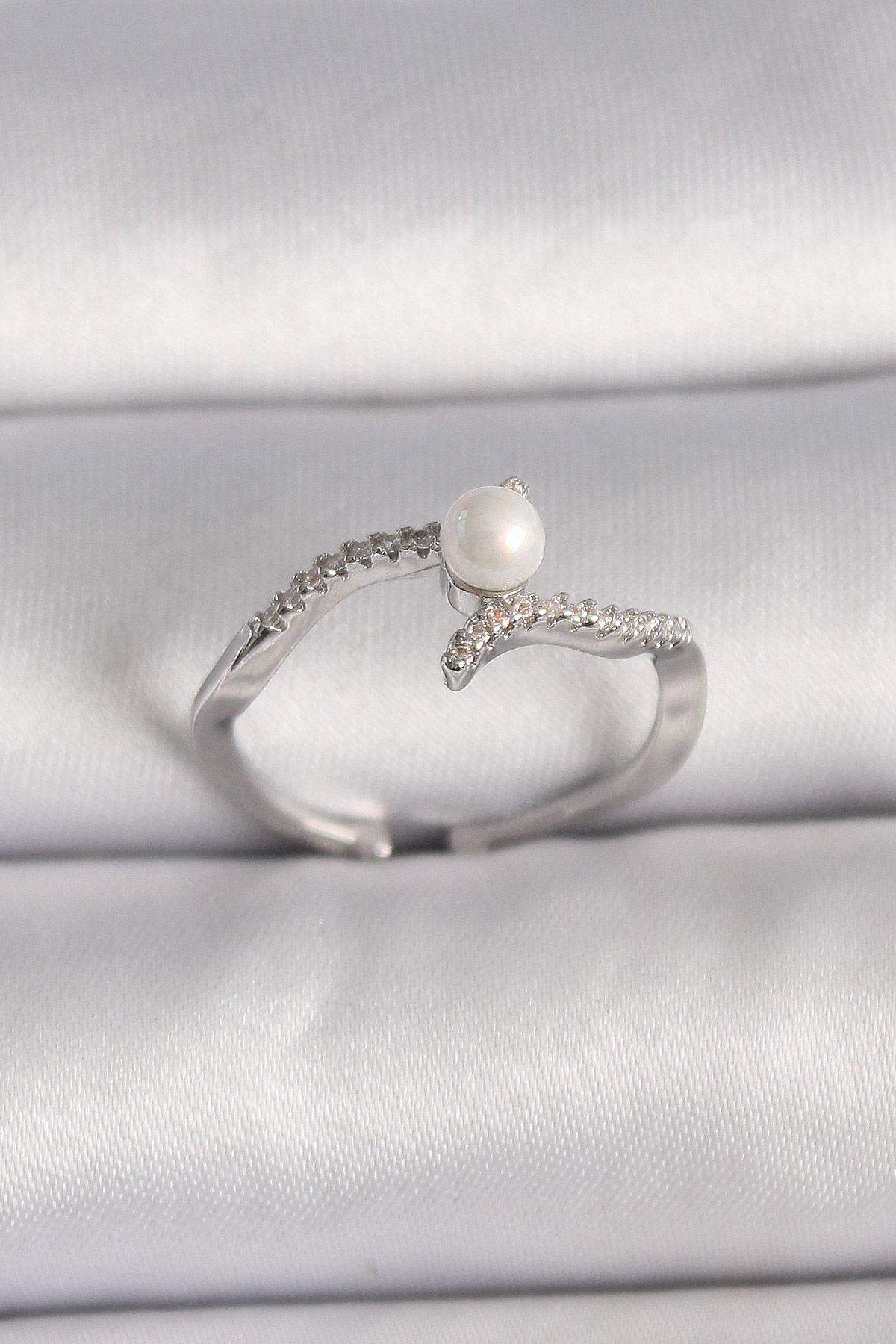 Pirinç Gümüş Renk Zirkon Taşlı Ayarlanabilir Yüzük