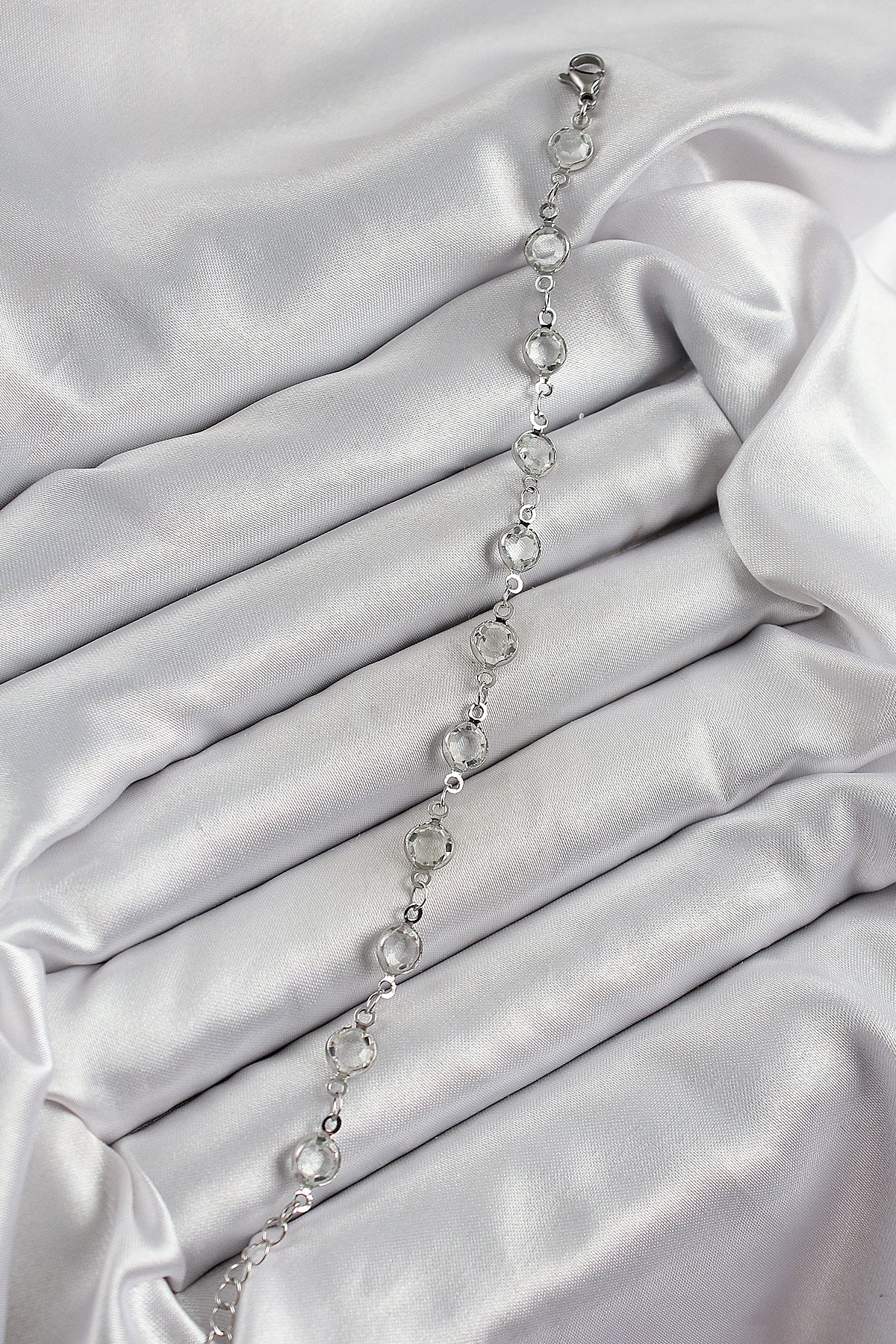 Pirinç Gümüş Renk Zirkon Taşlı Bileklik