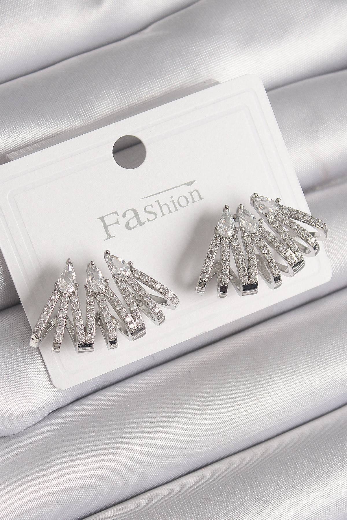 Pirinç Gümüş Renk Zirkon Taşlı Deniz Kabuğu Model Kadın Küpe
