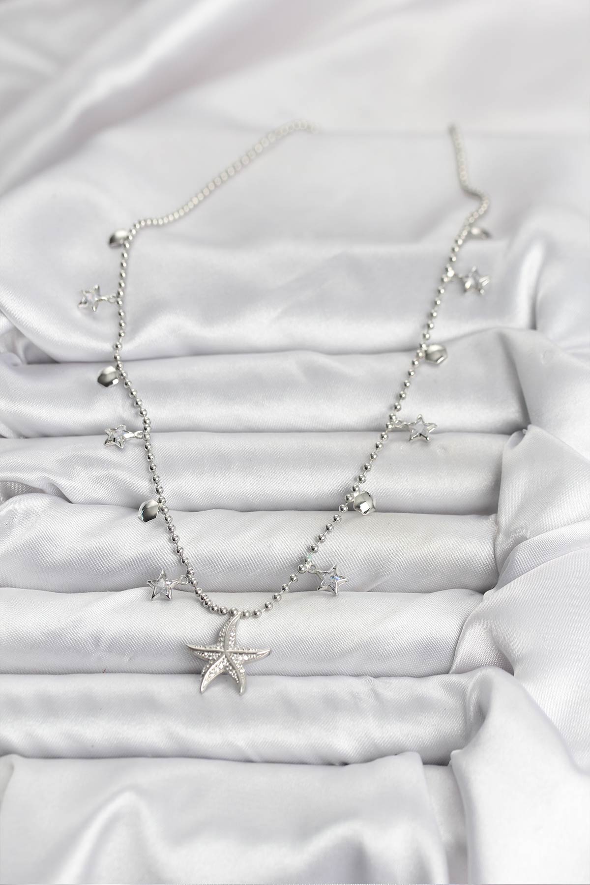 Pirinç Gümüş Renk Zirkon Taşlı Deniz Yıldızı Model Kadın Kolye