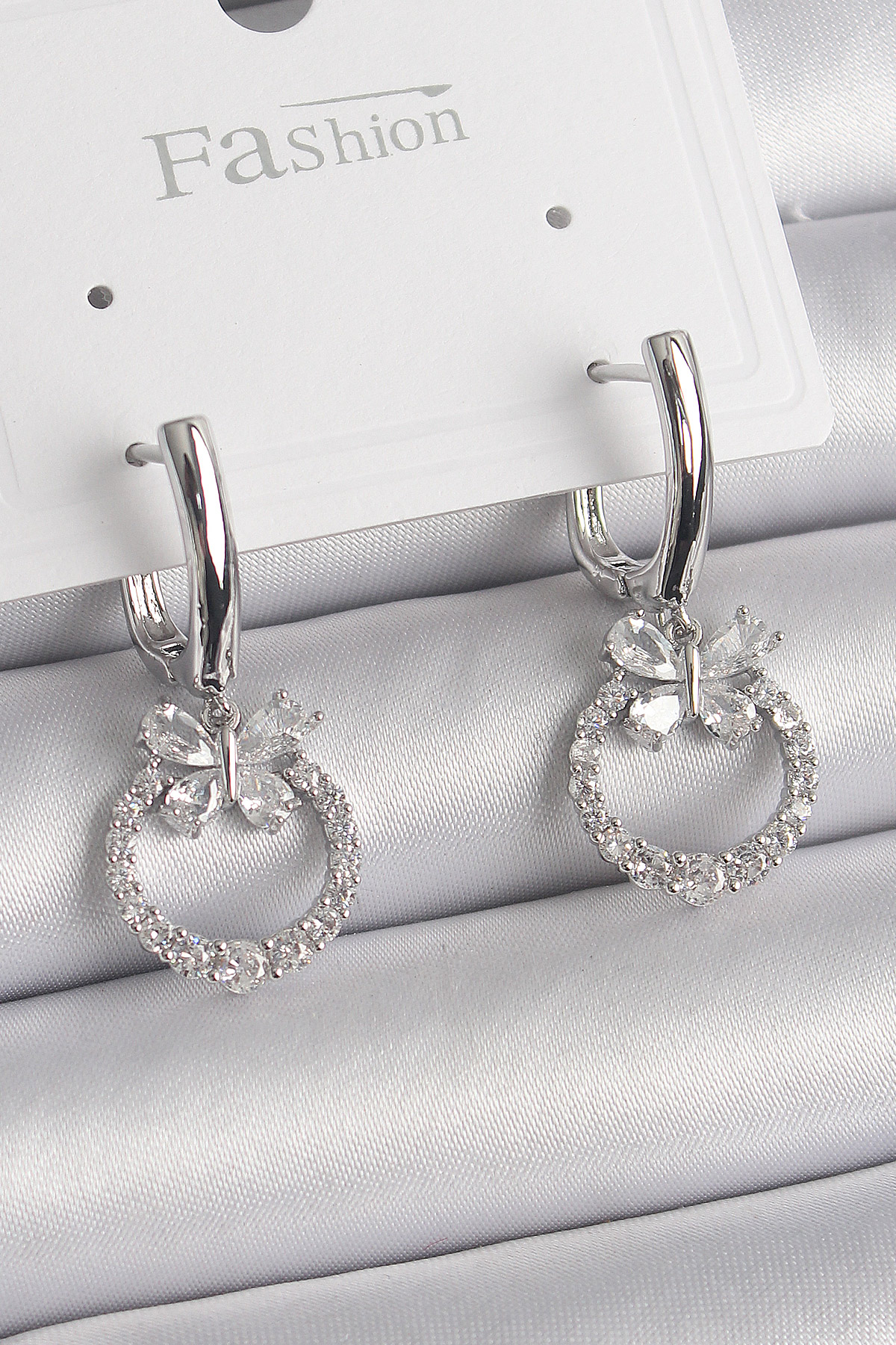 Pirinç Gümüş Renk Zirkon Taşlı Kelebek Figür Sallantı Detay Kadın Küpe