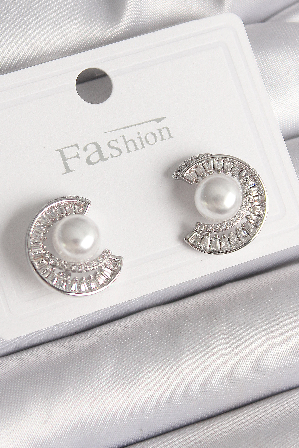 Pirinç Gümüş Renk Zirkon Taşlı Salyangoz Model İnci Detay Kadın Küpe