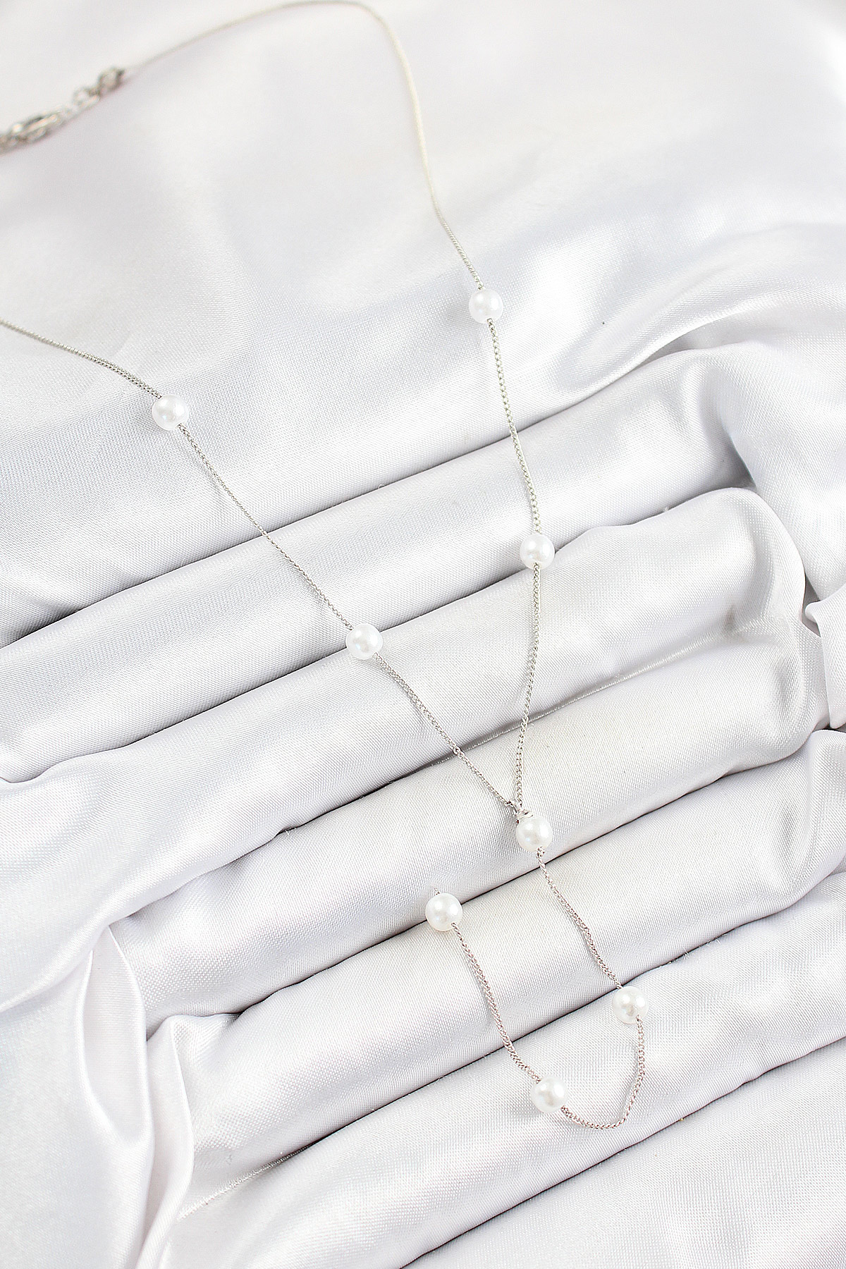 Pirinç İnci Figürlü Y Model Gümüş Renk Kadın Kolye