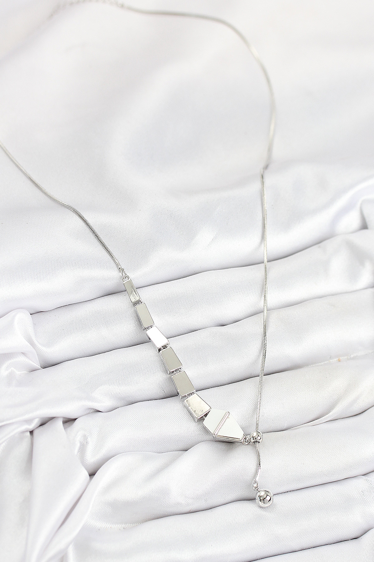 Pirinç Yılan Model Gümüş Renk Asansörlü Kadın Kolye