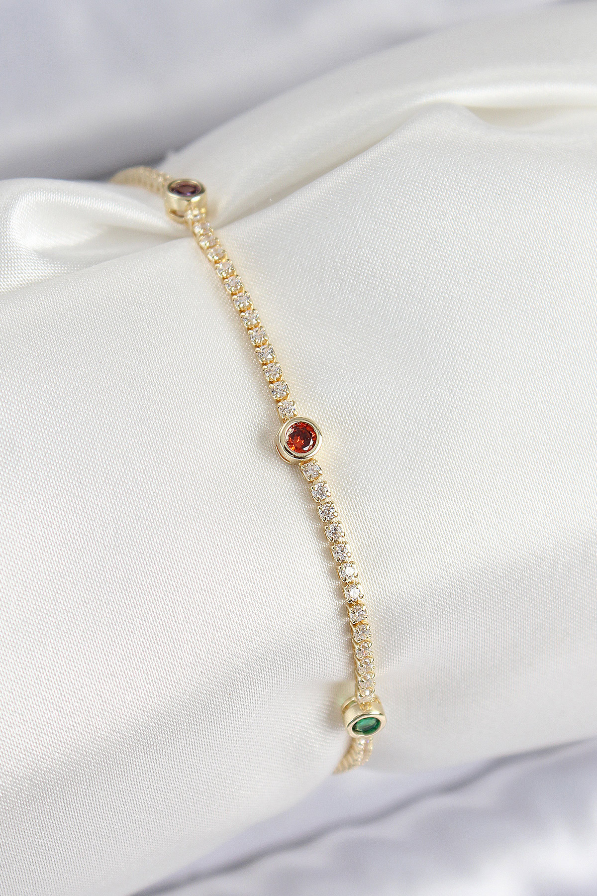Pirinç Zirkon Taşlı Asorti Model Gold Renk Kadın Bilekilk
