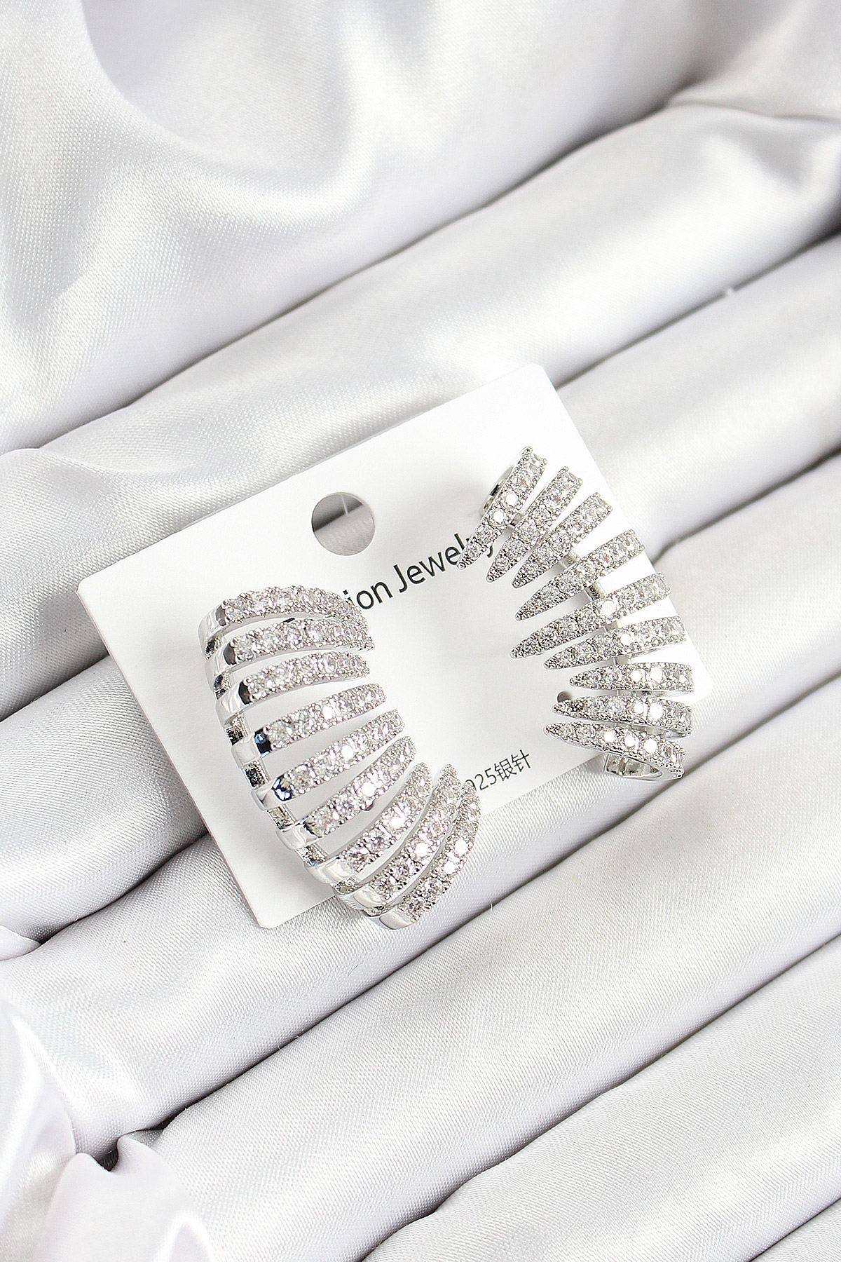 Pirinç Zirkon Taşlı Çoklu Görünümlü Model Gümüş Renk Kadın Küpe