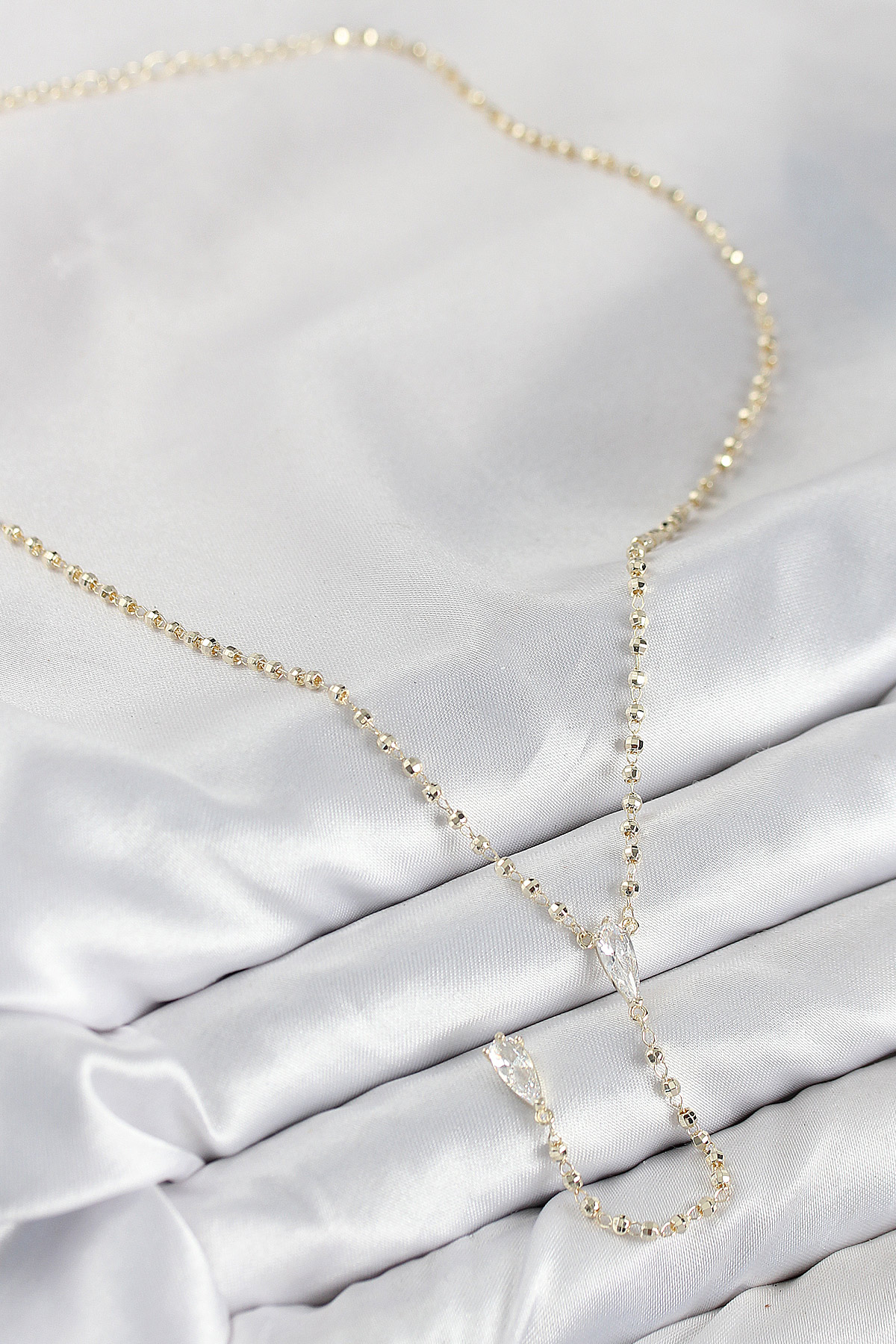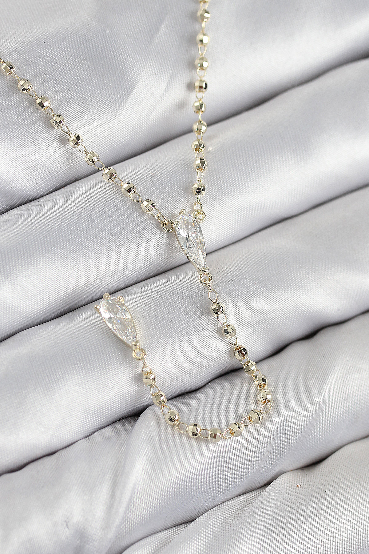 Pirinç Zirkon Taşlı Gold Renk Kadın Y Kolye