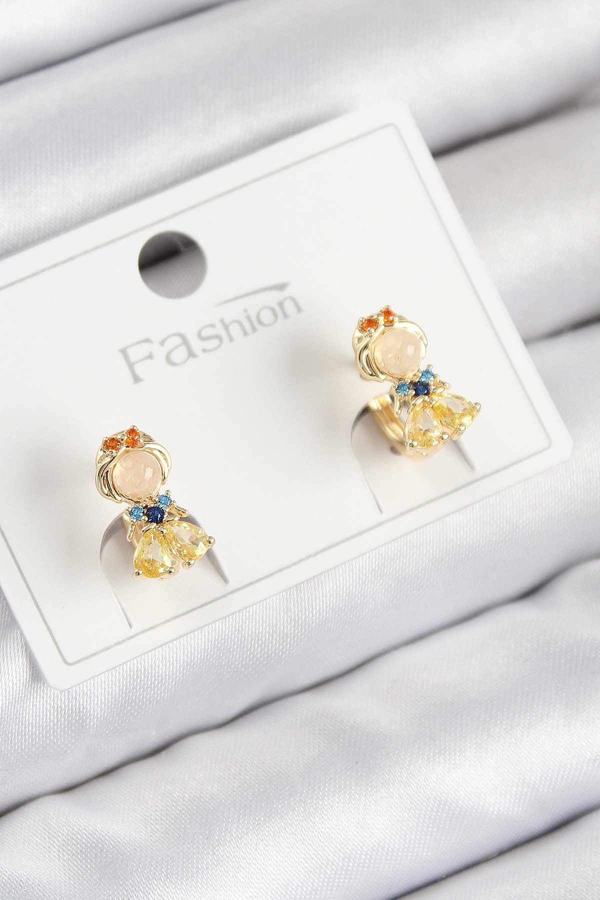 Pirinç Zirkon Taşlı Pamuk Prenses Model Gold Renk Çocuk Küpe