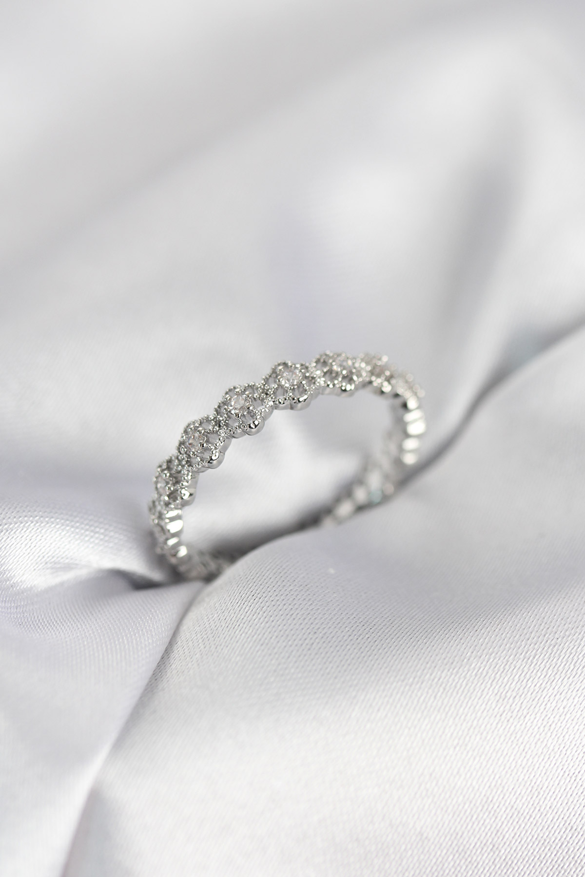 Sıralı Çiçek Model Gümüş Renk Zirkon Taşlı Kadın Yüzük