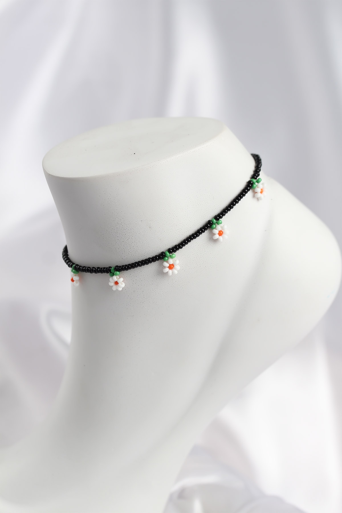 Ürün Özellikleri:Renk: Siyah ve beyaz papatya detaylıMalzeme: Boncuk ve ipAyarlanabilir uzunlukHafif ve rahat kullanımEl yapımı görünüm