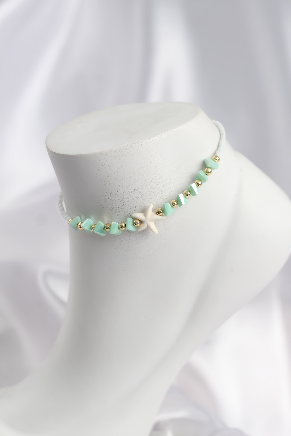 Su Yeşili Renk Deniz Yıldızı Motifli Halhal