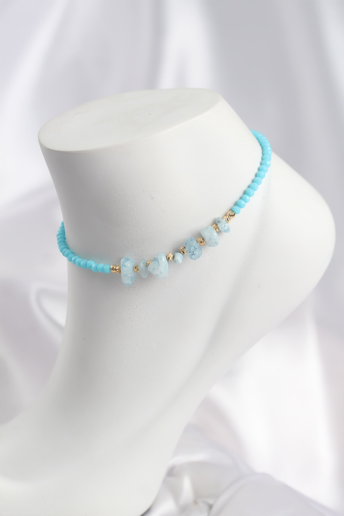 Turkuaz Renk Boncuklu Doğaltaş Görünümlü Halhal