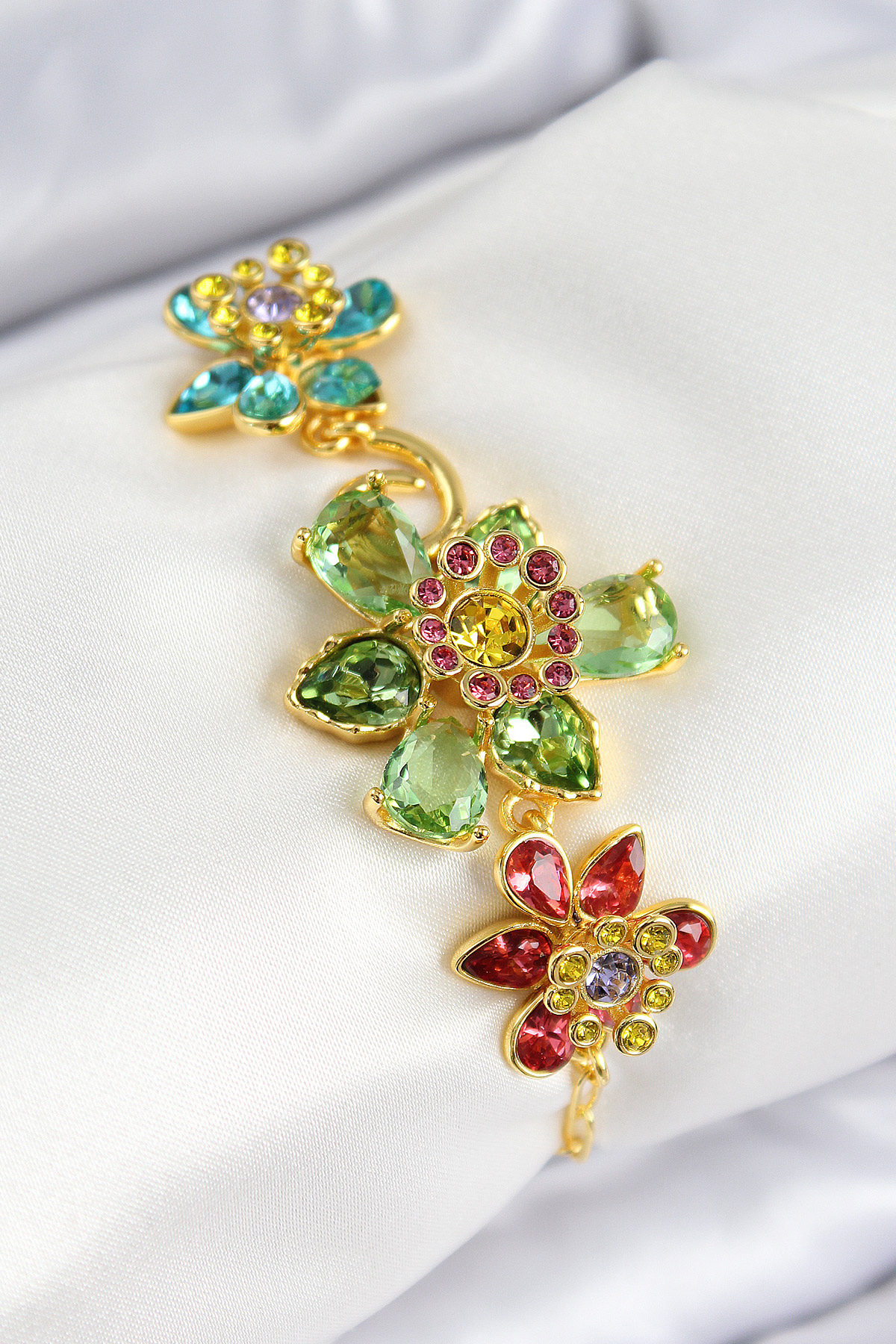 VIP Pirinç Zirkon Taşlı Çiçek Model Gold Renk Kadın Bileklik