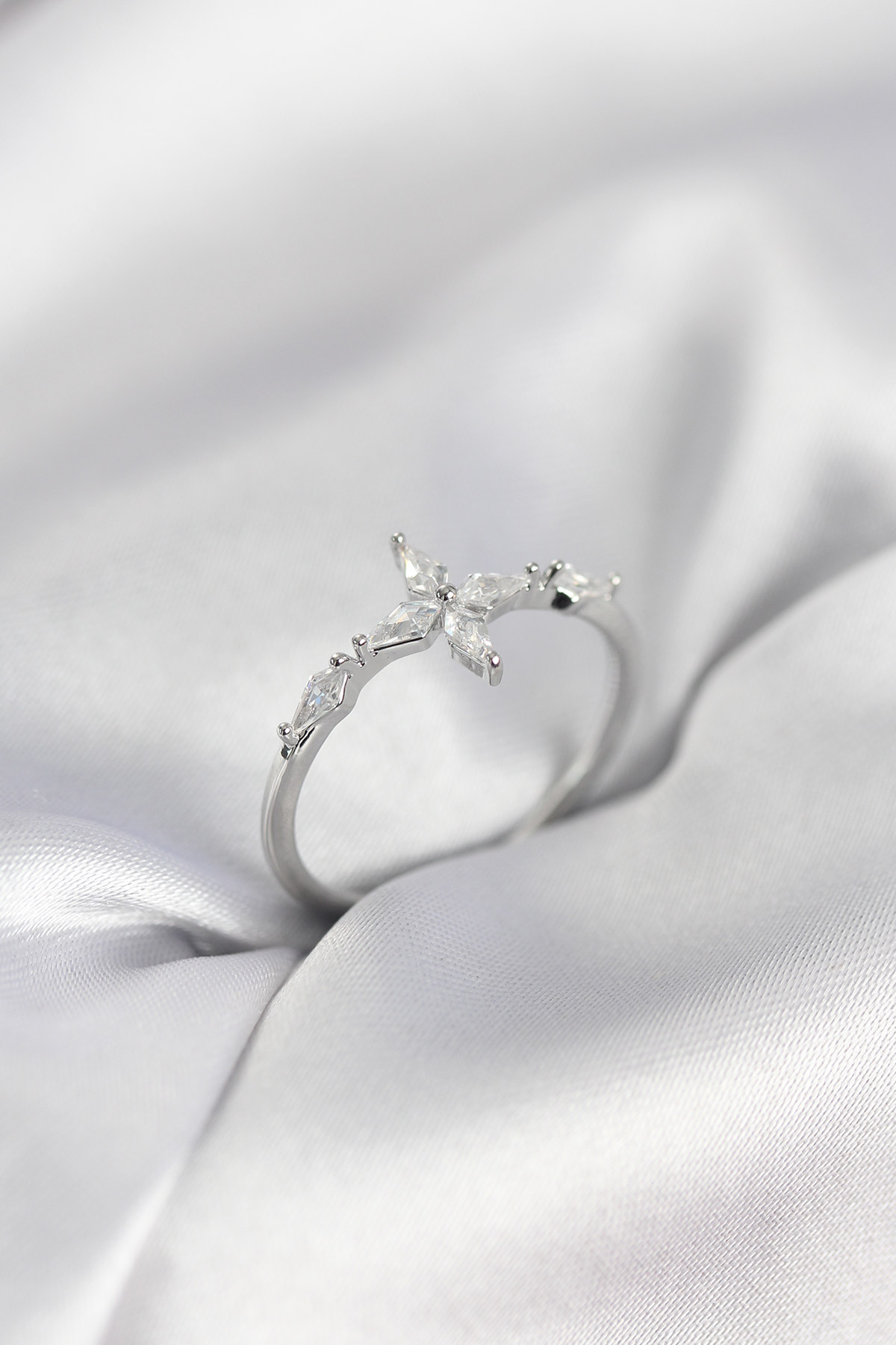 Yıldız Model Zirkon Taşlı Gümüş Renk Kadın Yüzük