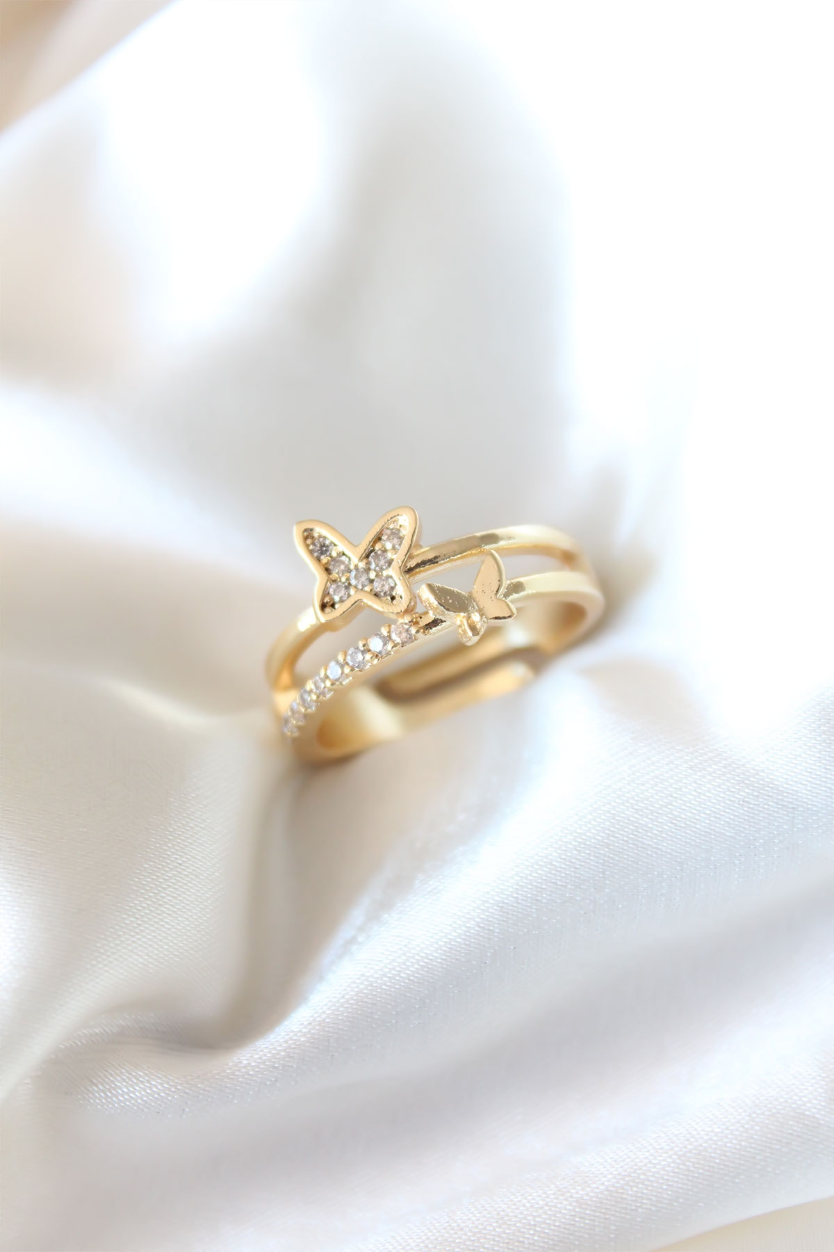 Zirkon Taşlı Altın Kaplama Kelebek Kadın Yüzük