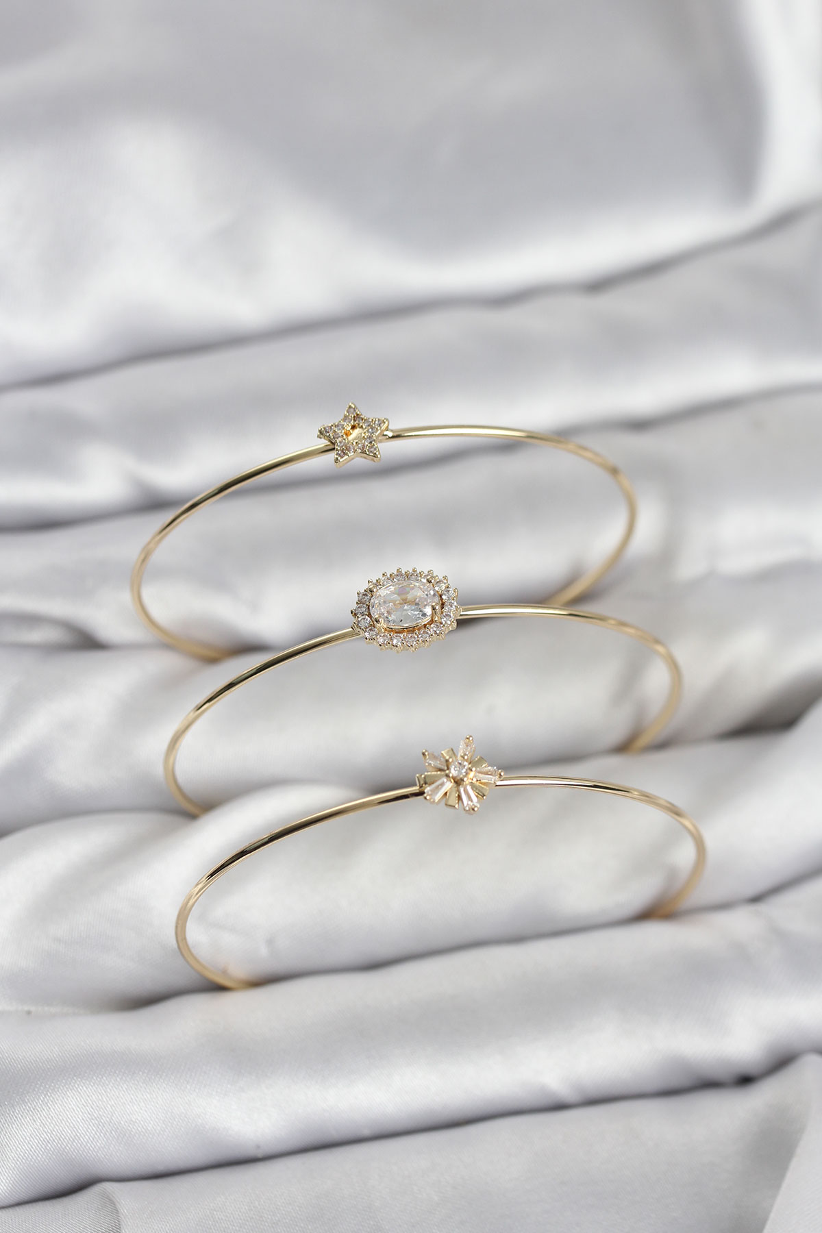 Zirkon Taşlı Gold Renk Tek Taş Model 3’lü Kadın Bileklik Kombini