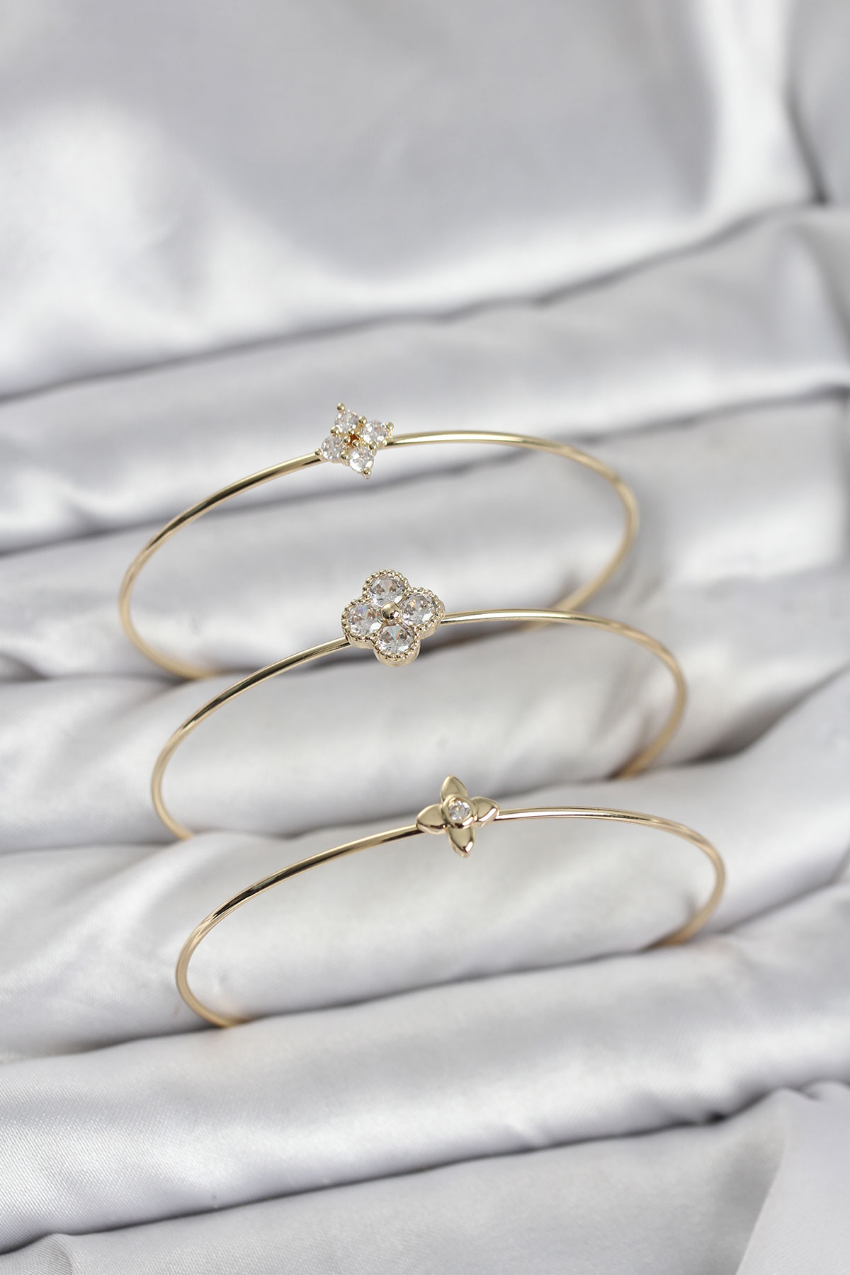 Zirkon Taşlı Gold Renk Yonca Tasarım 3’lü Kadın Bileklik Kombini