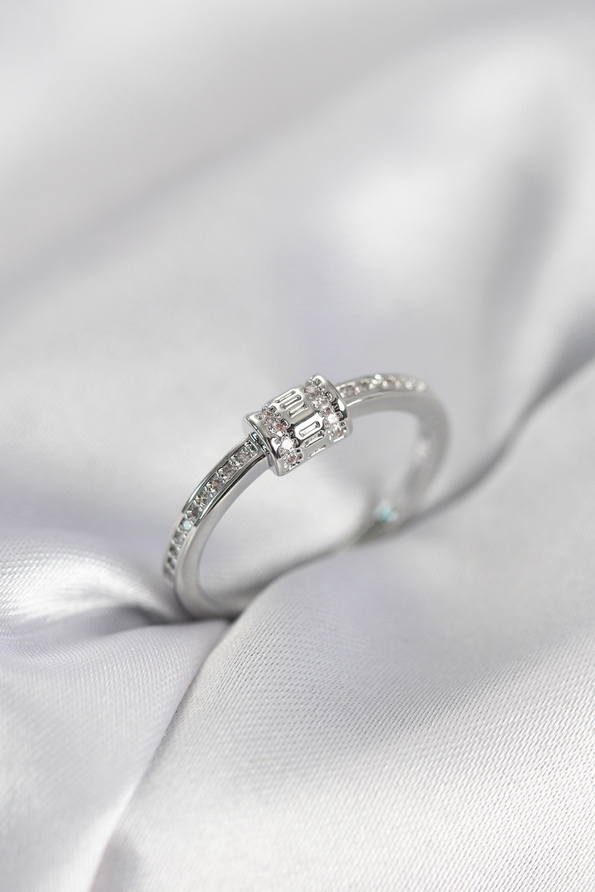 Zirkon Taşlı Gümüş Renk Pirinç Kadın Yüzük