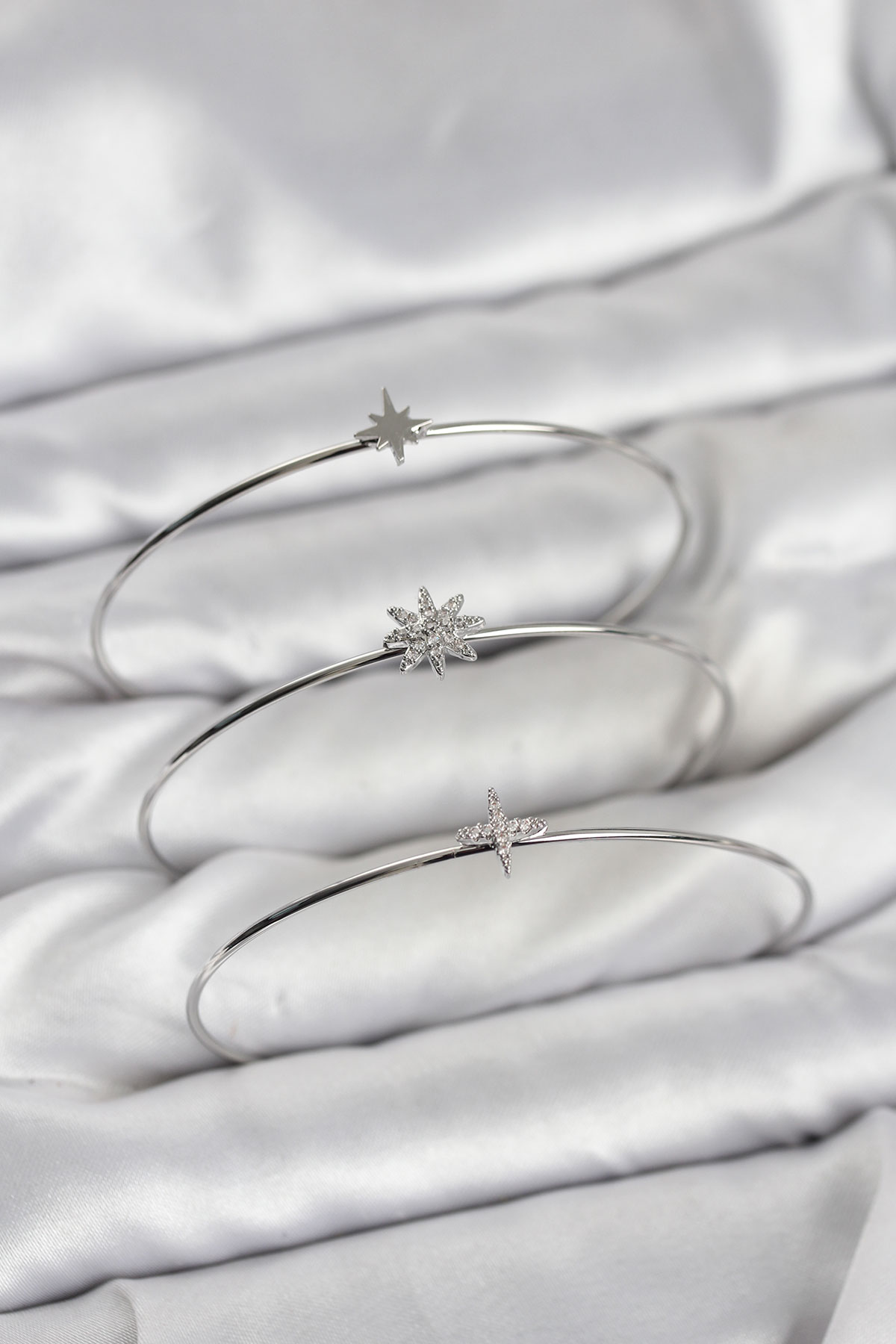 Zirkon Taşlı Kutup Yıldızı Model Gümüş Renk 3’lü Kadın Bileklik Kombini