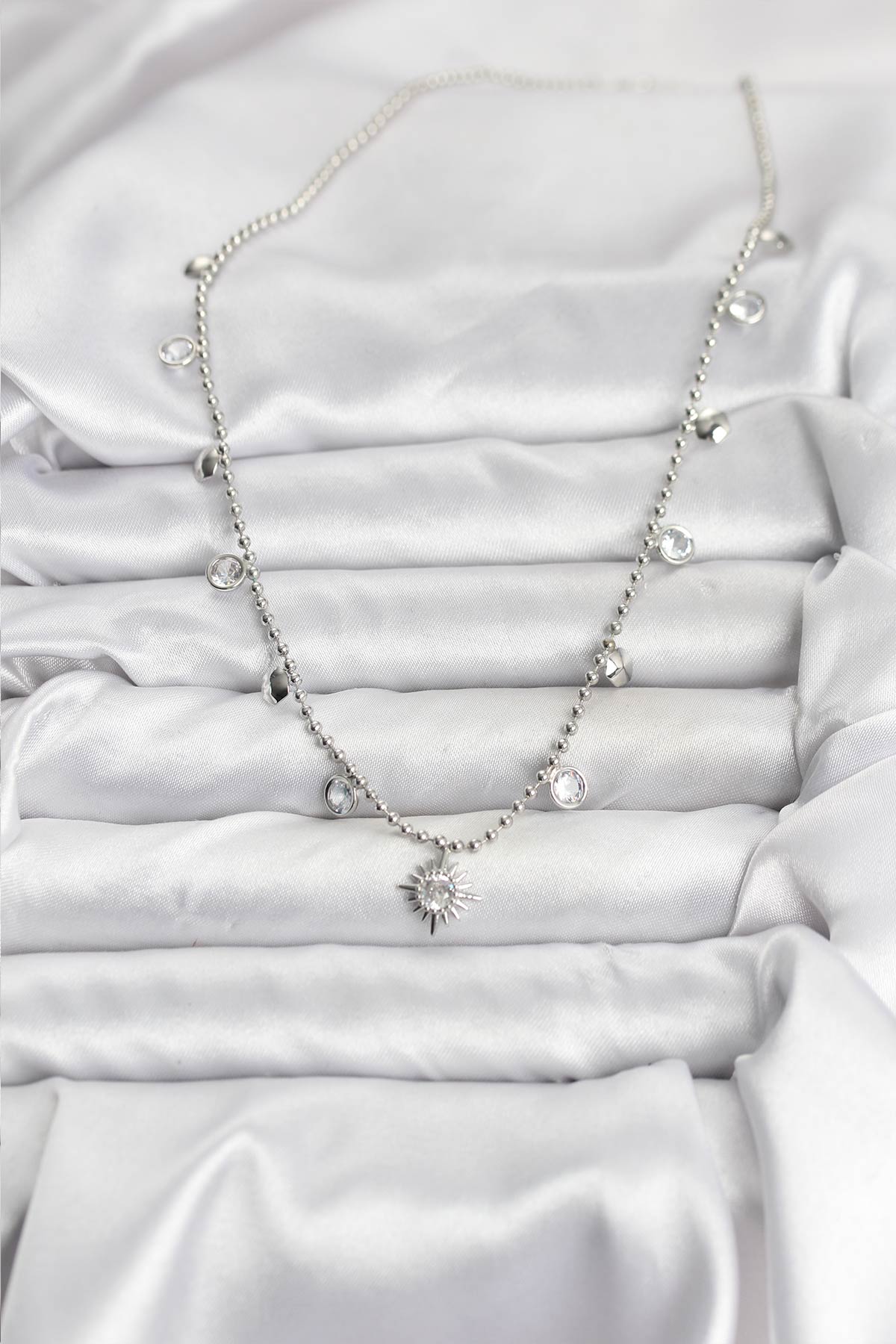 Zirkon Taşlı Kutup Yıldızı Model Pirinç Gümüş Renk Kadın Kolye