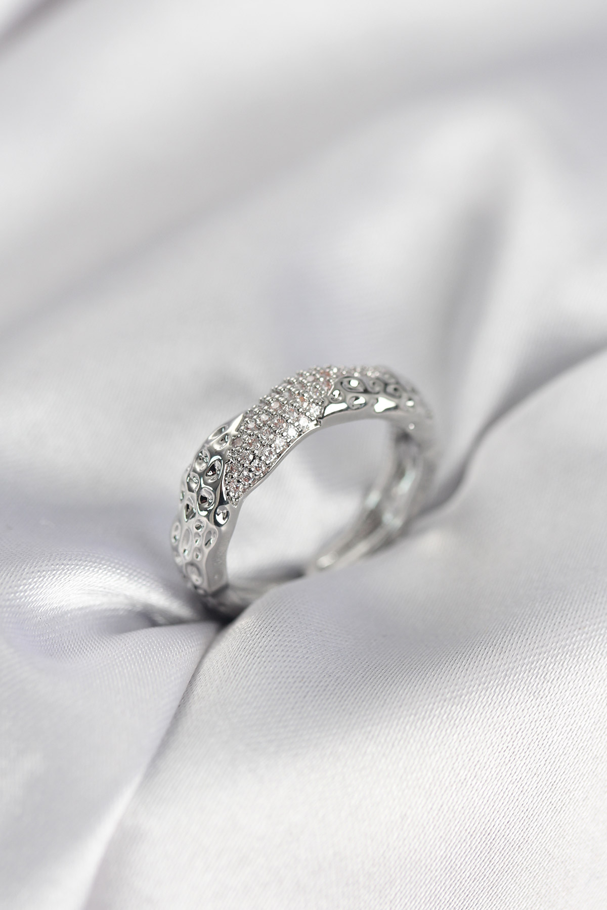 Zirkon Taşlı Puntalı Gümüş Renk Kadın Yüzük